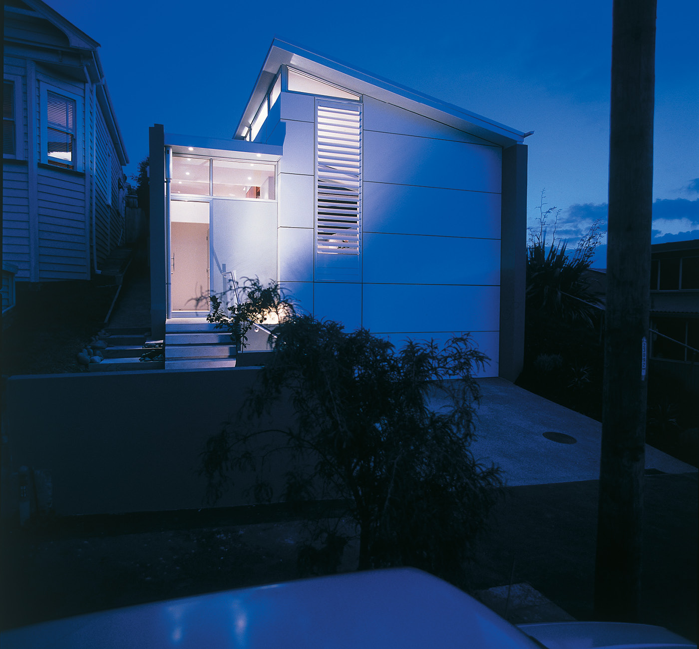 Tucked down a no-exit street in the Auckland inner-city suburb of Ponsonby, the home sits sandwiched between a villa on one side and a school on the other, and facing a row of commercial buildings. It’s an introvert, in the nicest possible way.