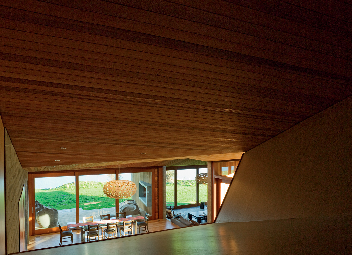 Tempting as they are, this is not a house that surrenders itself to the views, but carefully manages them. The rooms are not encased in huge sheets of glass, but have windows and doors that edit the vista in ways that foster deeper appreciation of the smaller moments that make up the breathtaking panorama outside.