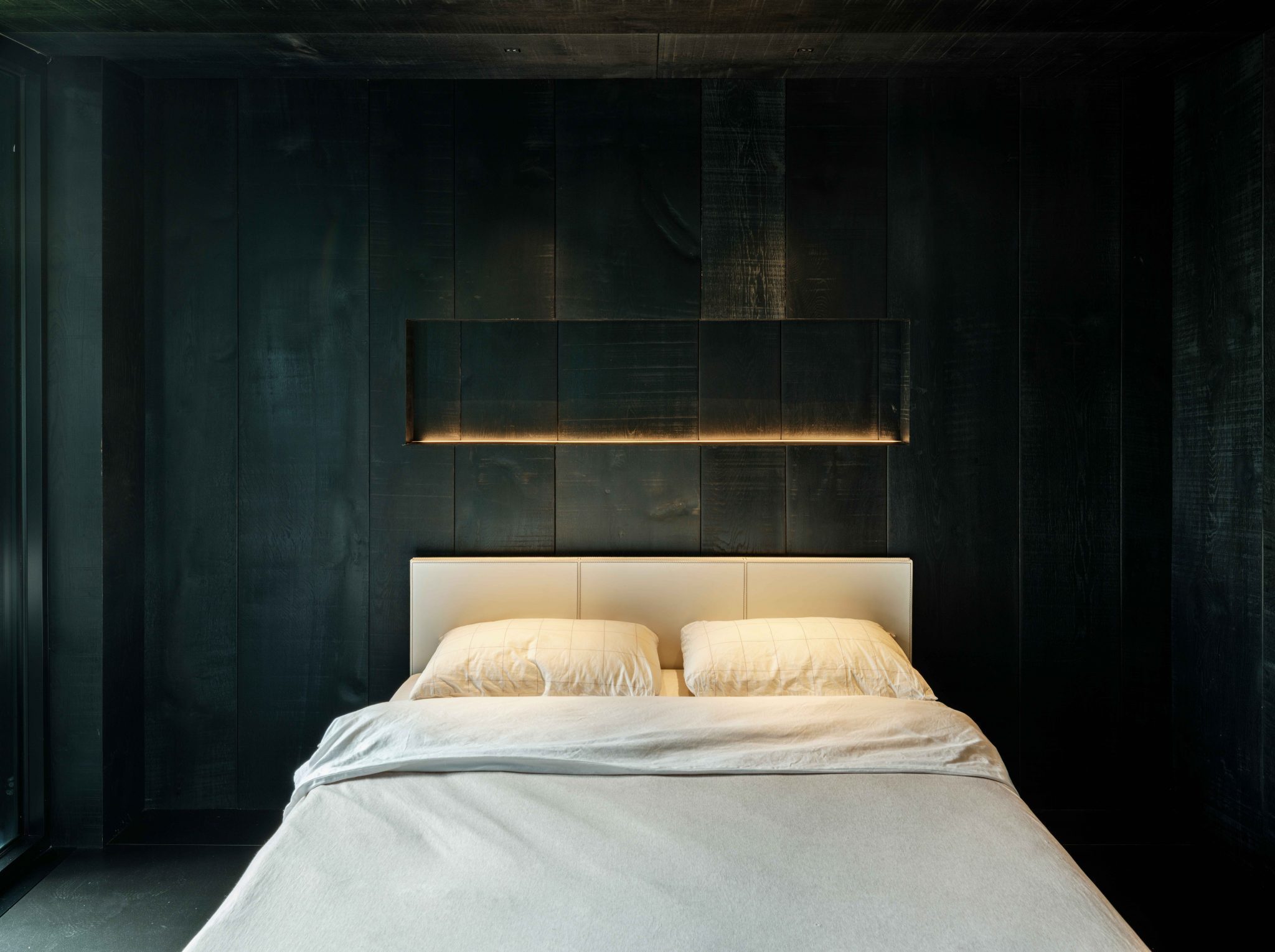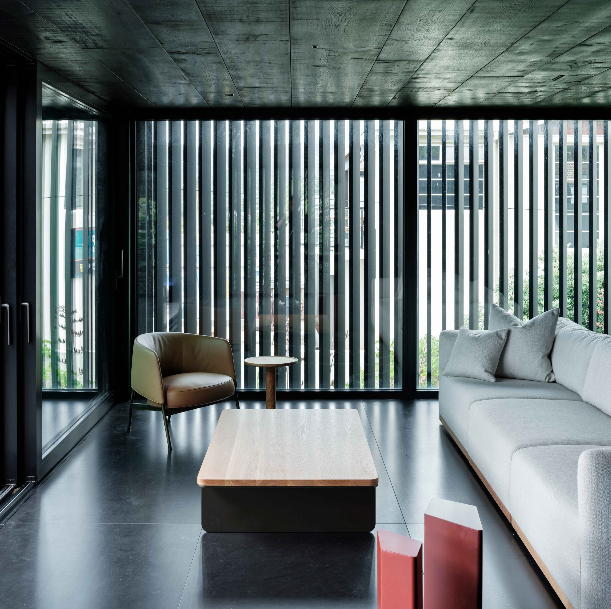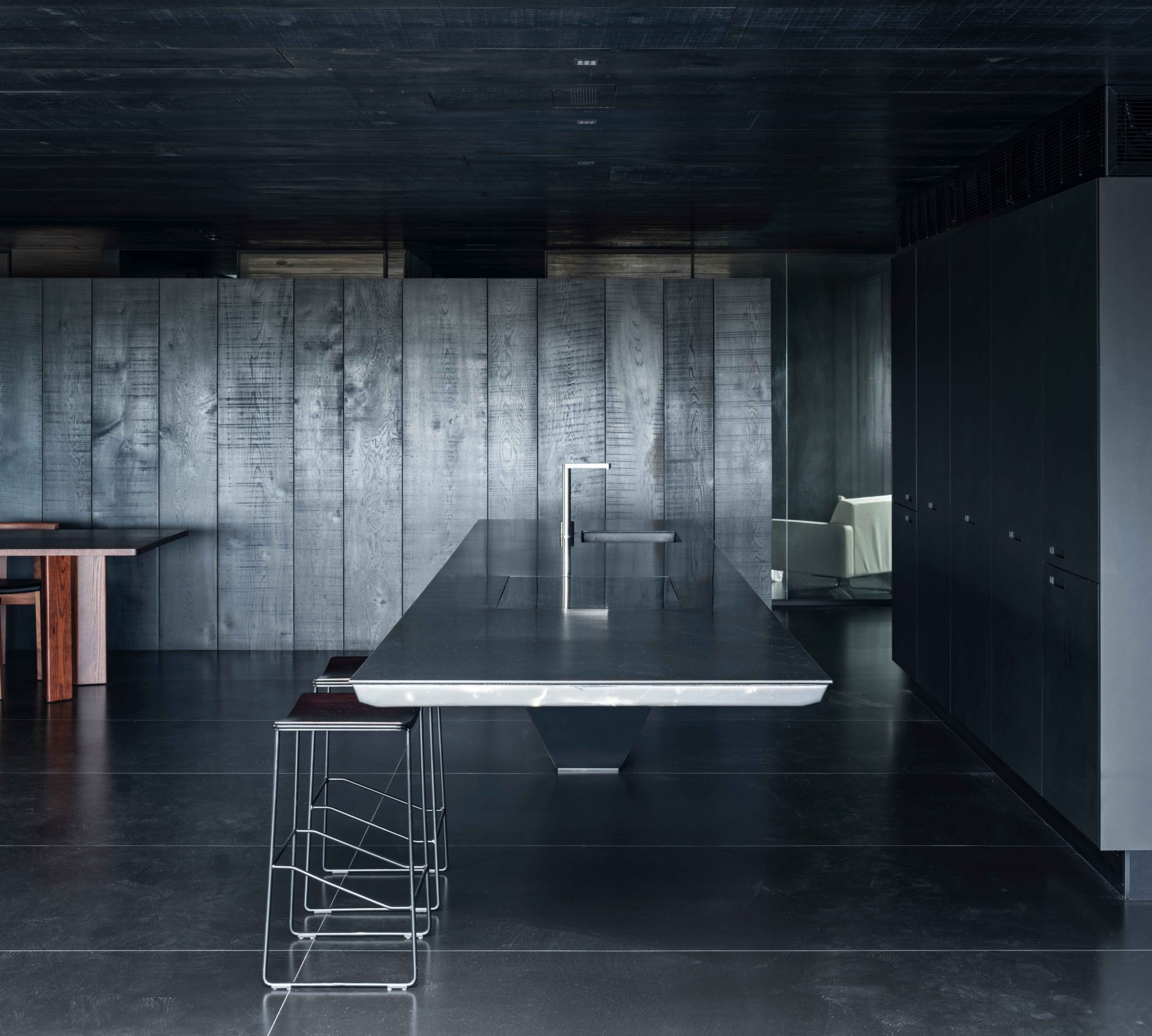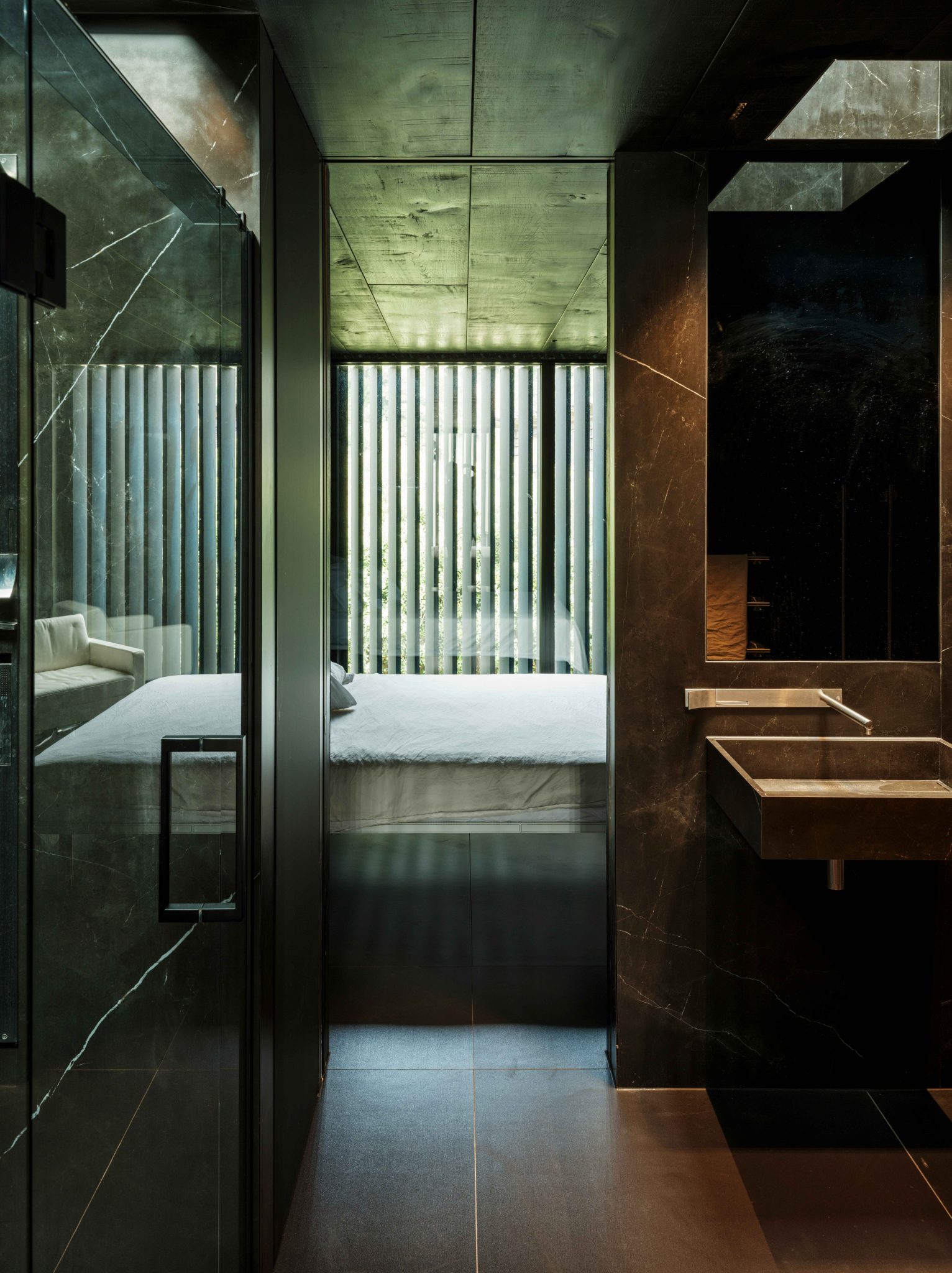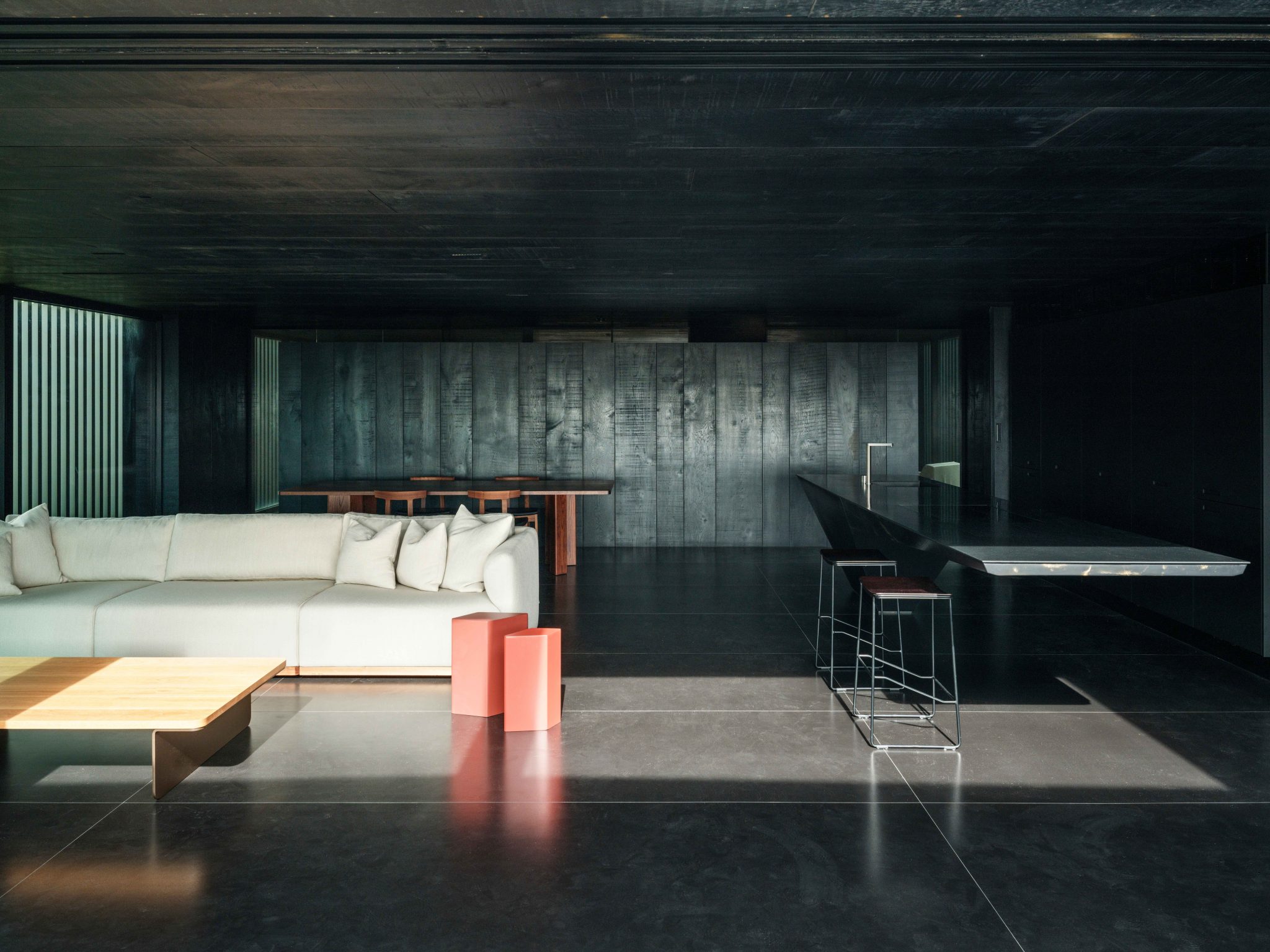 Although black dominates the interior, this is the architectural equivalent of a Zambesi wardrobe: variations of sheen and texture, geometry and finish give the place enough interest and vibrancy despite its monochromatic soul.