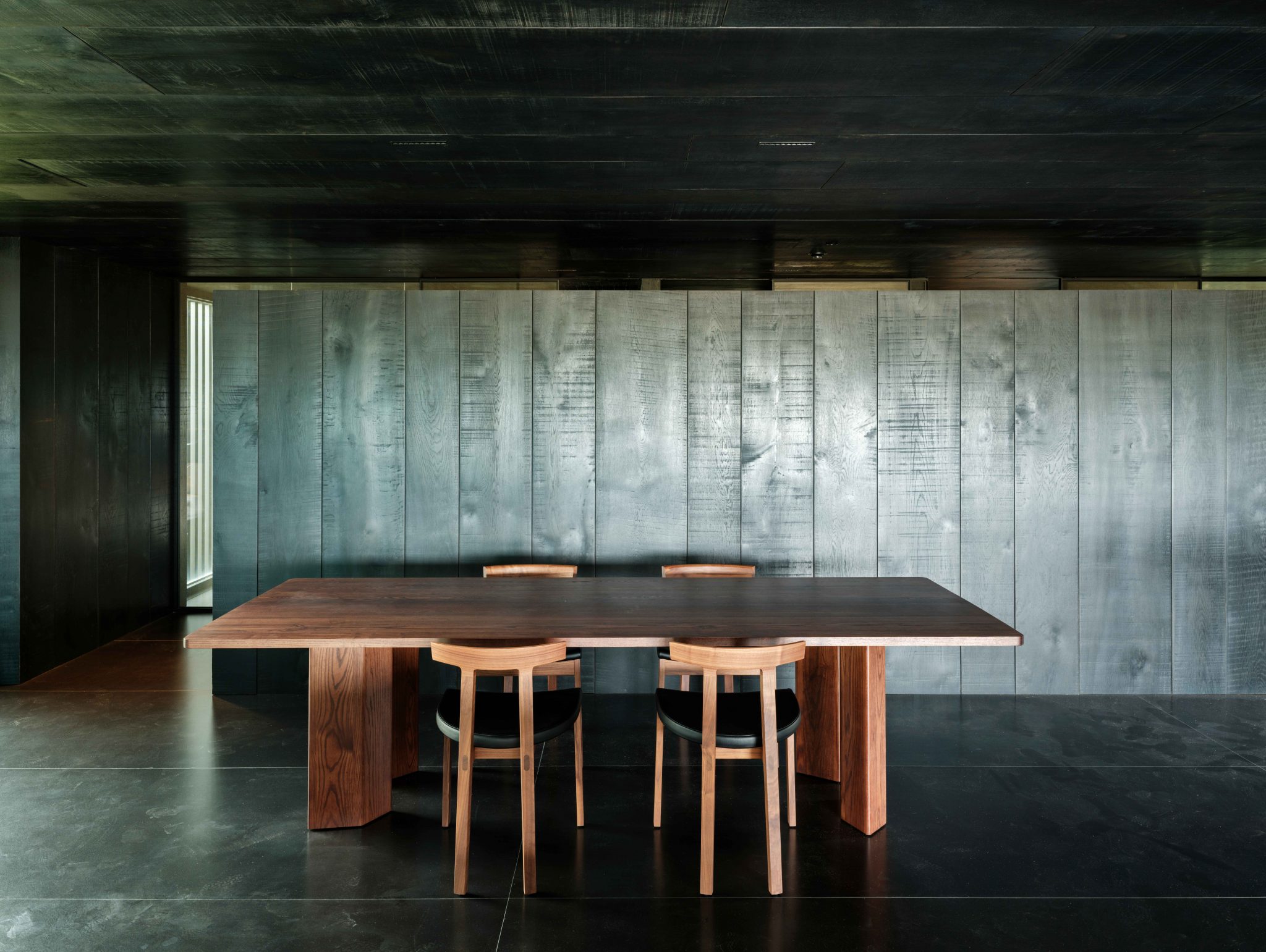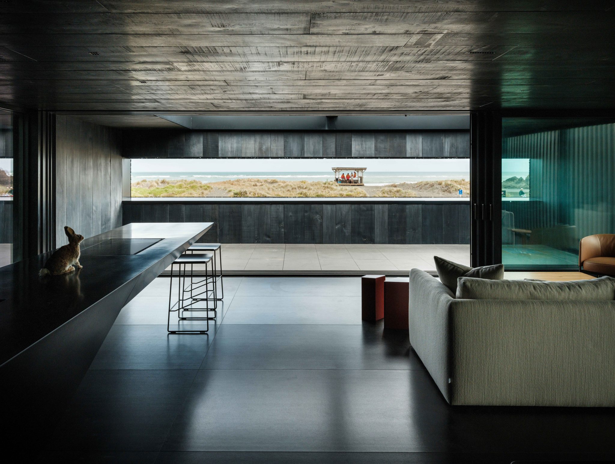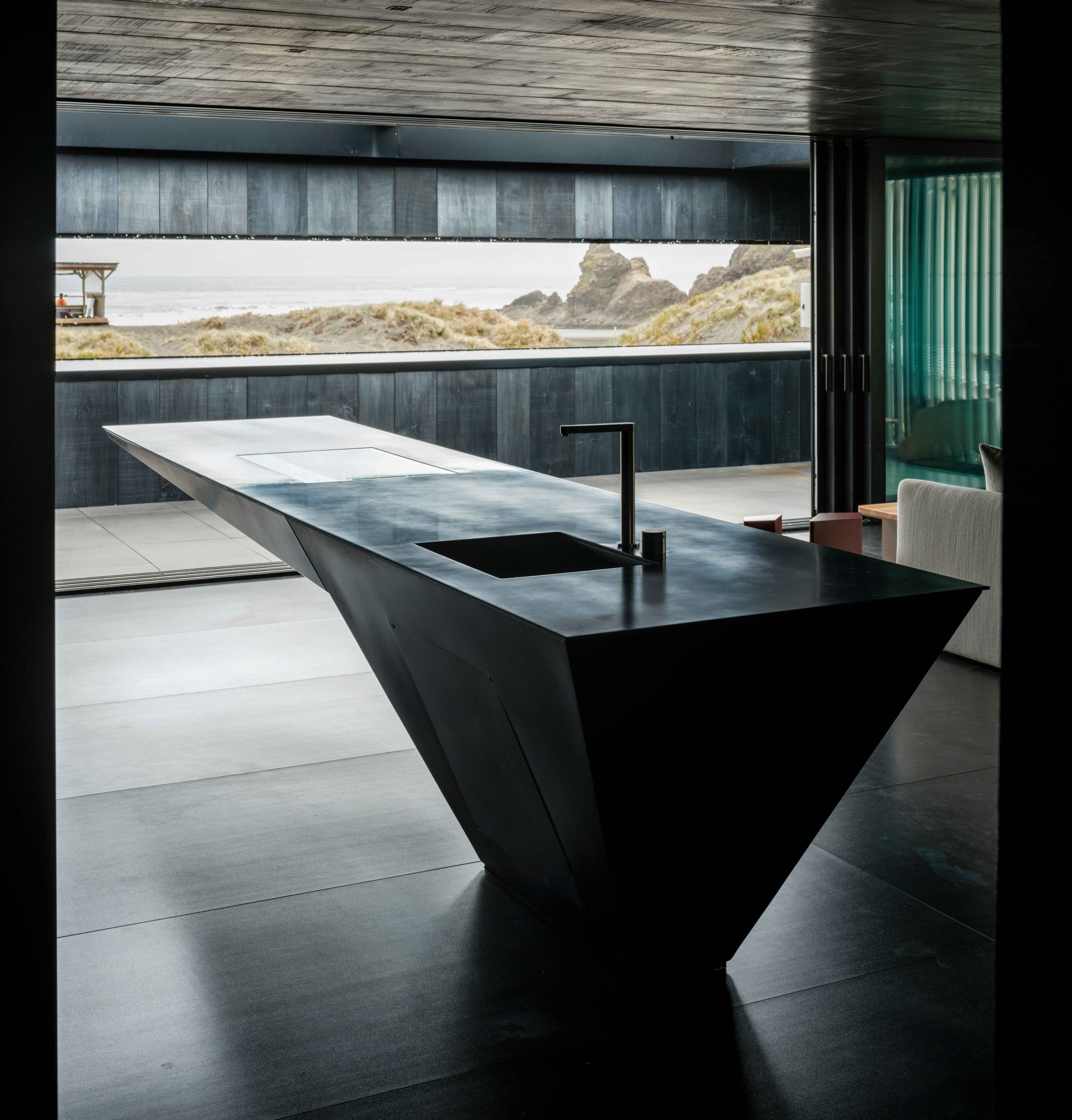 Although a relatively small beach house (150 square metres, including its generous deck), it took 14 years to complete — approximately seven for design and seven for construction. According to Tate, he and the overseas-based client would “have a year-long debate about the cladding, then go away and have a year-long debate about the kitchen. We also had to present four or five different options for each thing. Every detail in the house was a project on its own.”