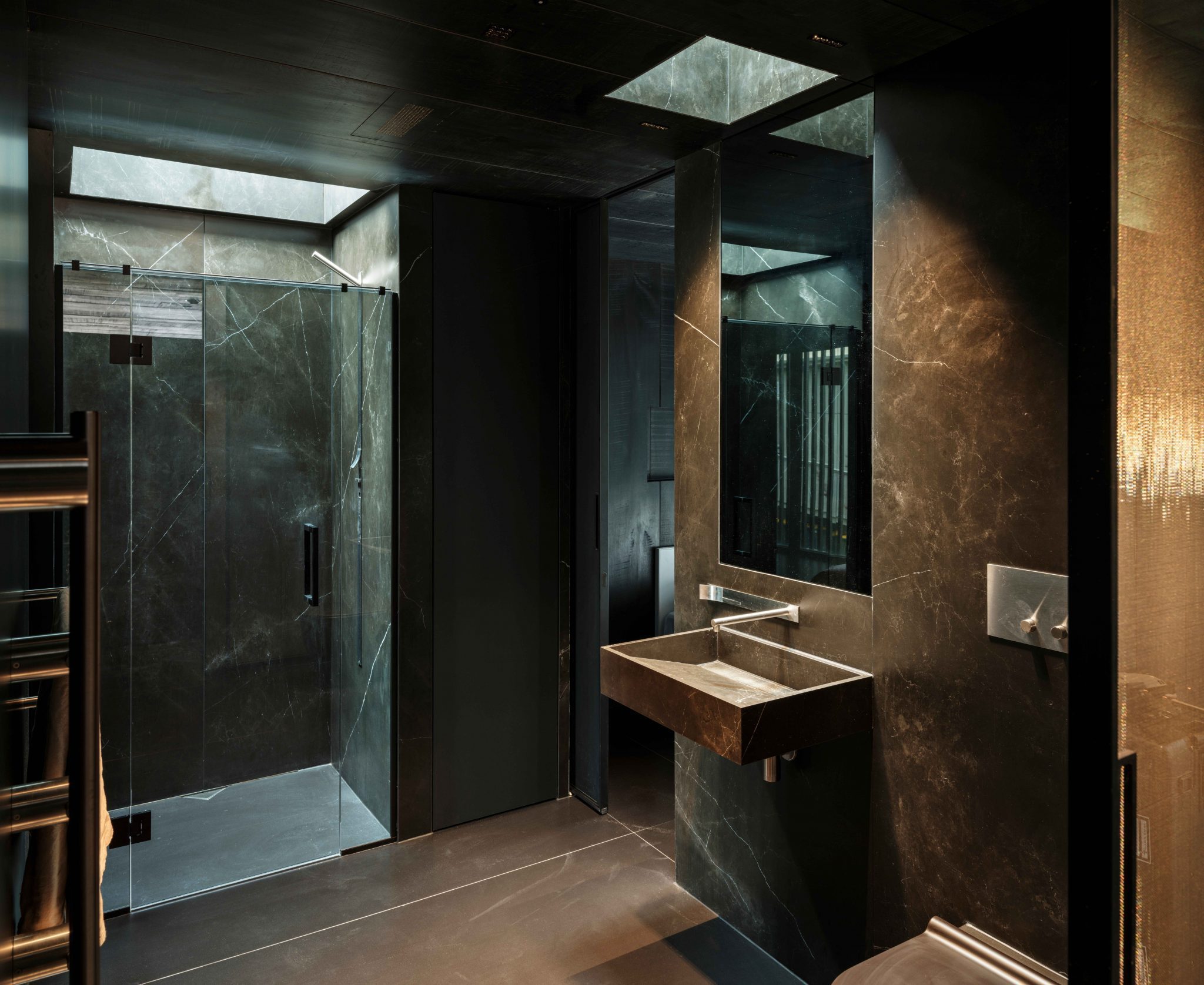 This level of detail and commitment to the original vision of the project is evident at every touchpoint. The house is unapologetically ‘masculine’; a mean-looking bunker that could easily house a blockbuster baddie. Yet it was built to a planet-friendly, passive house standard.
