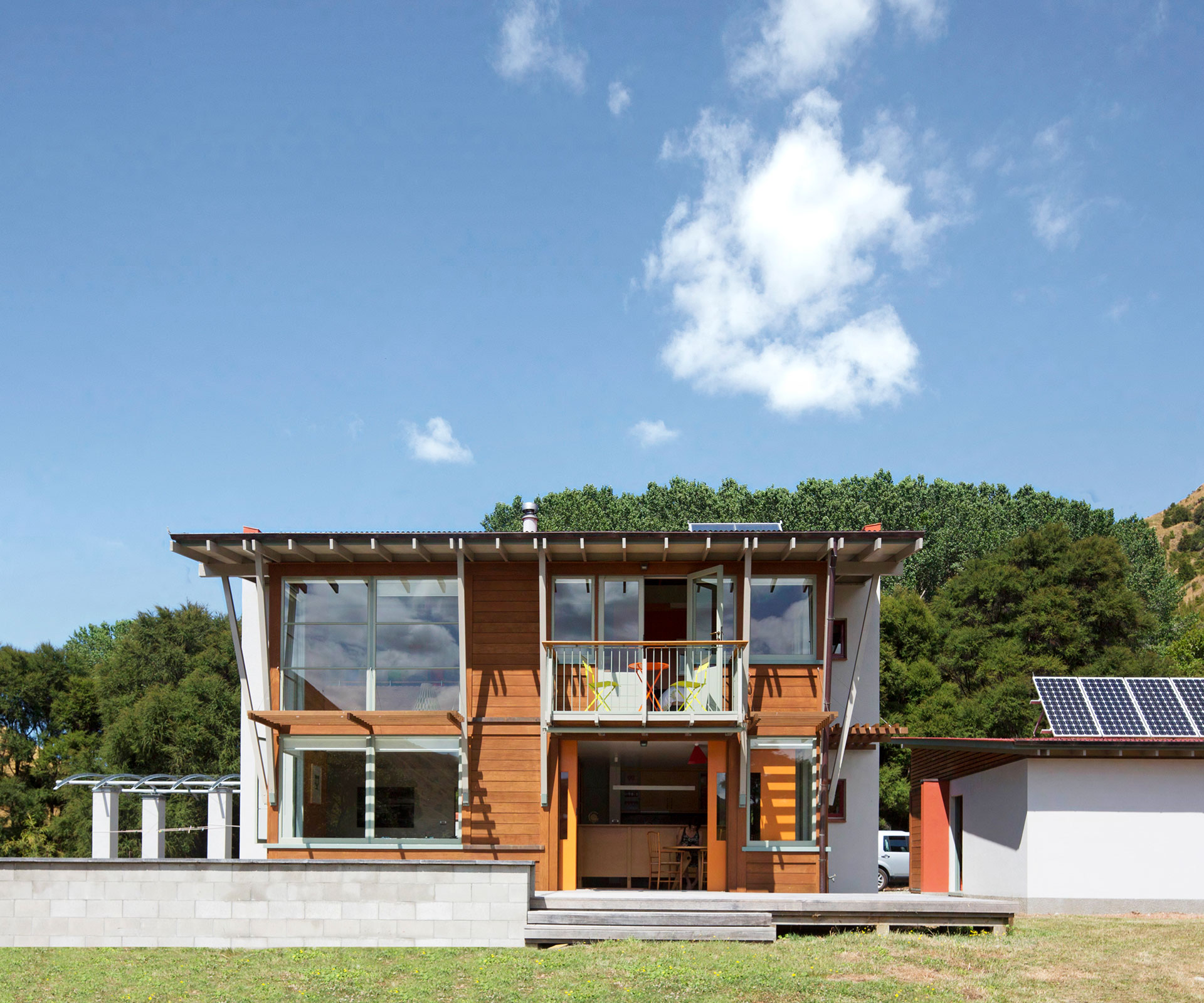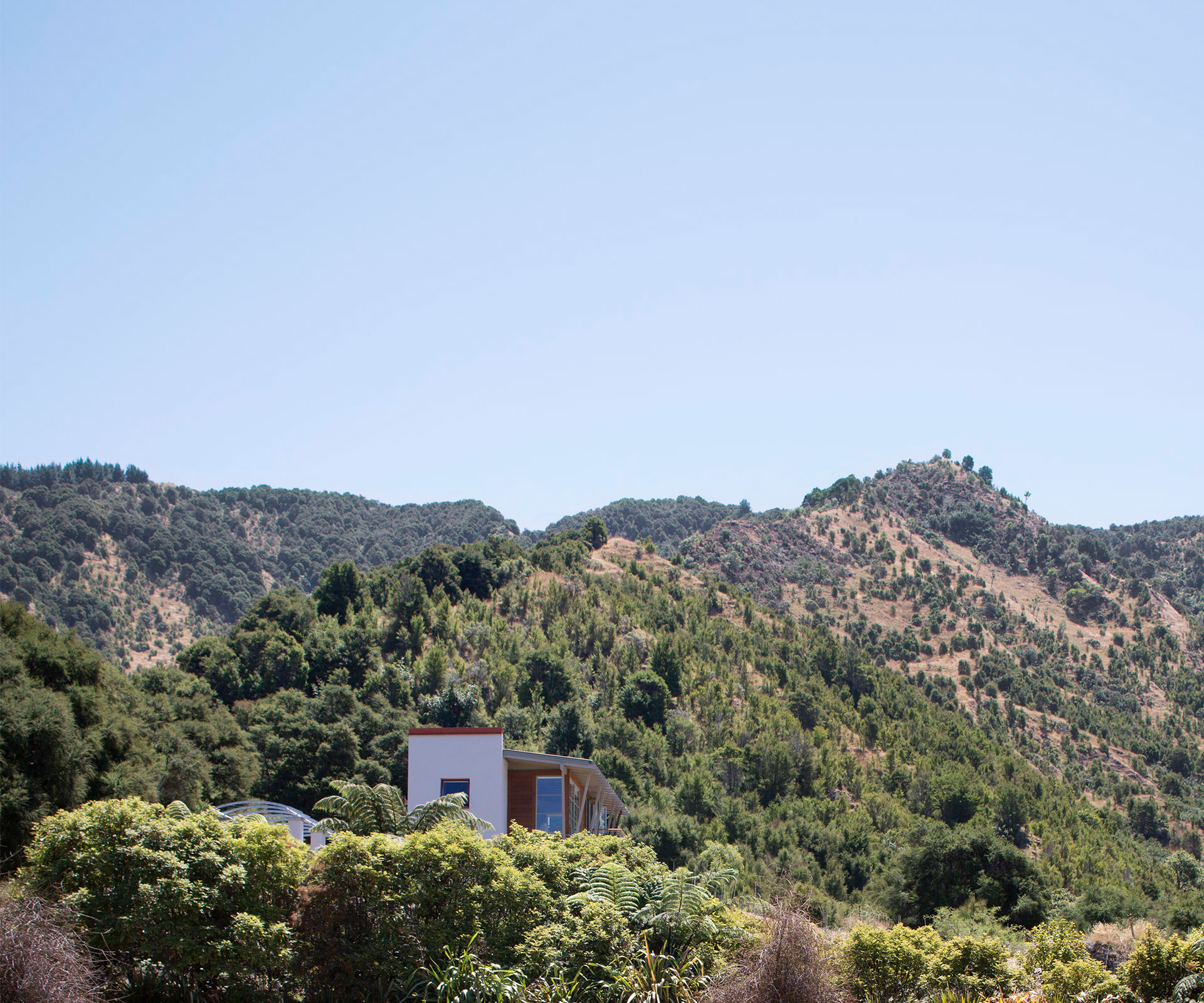 With a busy life in Auckland and family to stay with in Gisborne, the Salmonds initially felt no pressure to build a house on the land. For 10 years they visited regularly and worked on the property, before deciding it was time to establish a more permanent base. A garage was designed and constructed from which to run the project. Solar panels for water and power were fitted as a rational and less expensive solution to using electricity from the grid.