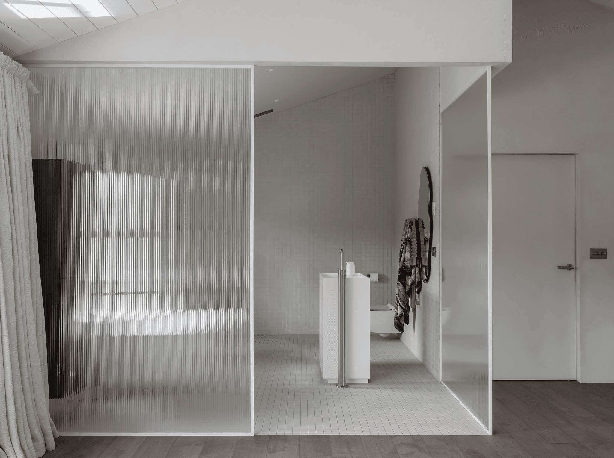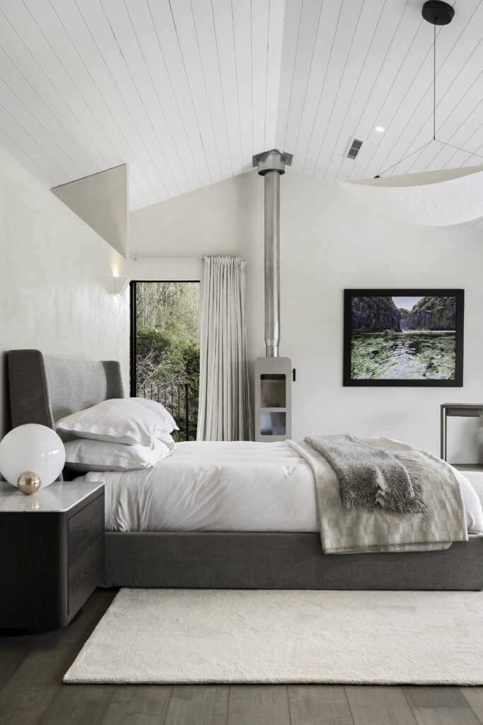 “For the primary bedroom, we paired a Poliform upholstered bed with New Zealand–made marble and oak bedside tables,” says Karen. “Through selectively combining European design with New Zealand design, we have achieved a high-end feel that is both comfortable and relevant to place.”