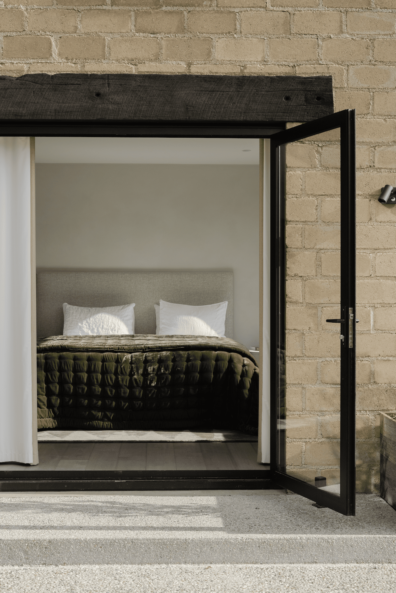 Storage and wardrobes were added to bedrooms to make them more comfortable for guests, with a larger bedroom split into two to help the clients accommodate larger groups. Fine linens and soothing colour palettes help make the bedrooms into peaceful spaces where the views of the landscape can be enjoyed without being upstaged.