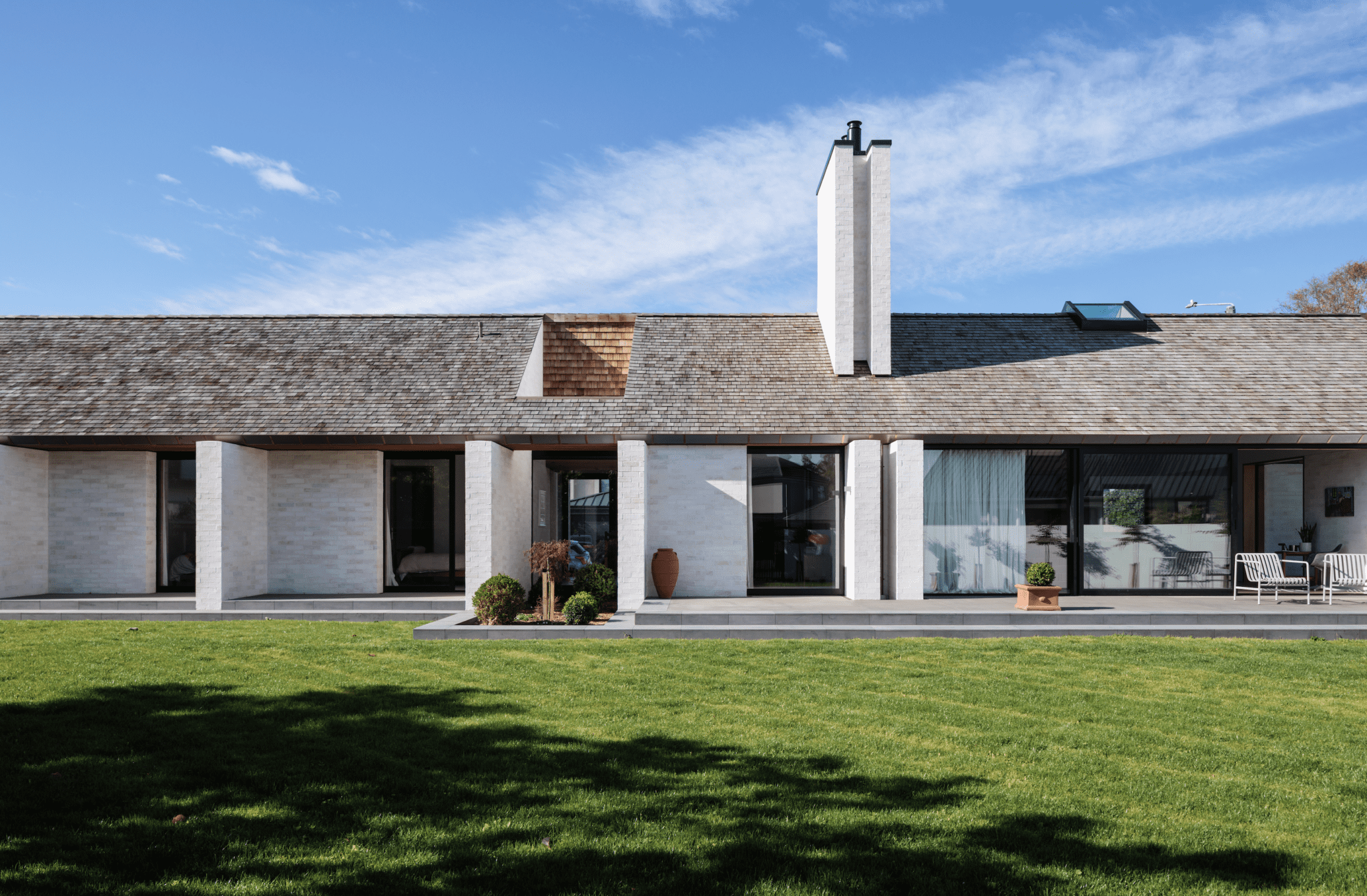 The northern elevation is where another important design influence comes to the fore. One of the owners is Dutch, “so that was an inspiration for the form and some of the textures,” says the architect, mentioning the Dutch tradition of long, gabled, rural houses (langgevel).