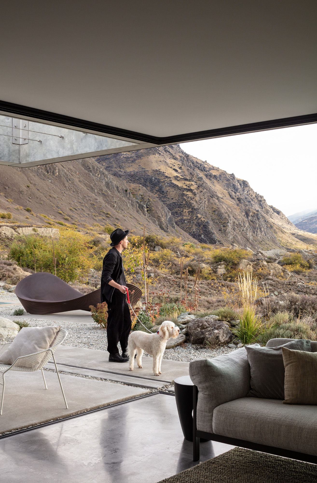 “It’s a landscape of extremes. [This house is] the last property before the Kawarau Gorge,” Bergendy explains. “[The clients] wanted a house that blended into the landscape but gave them protection from the harsh environment. It’s not a house that wants to show off. It’s one that wants to be quiet, subtle, and calm.