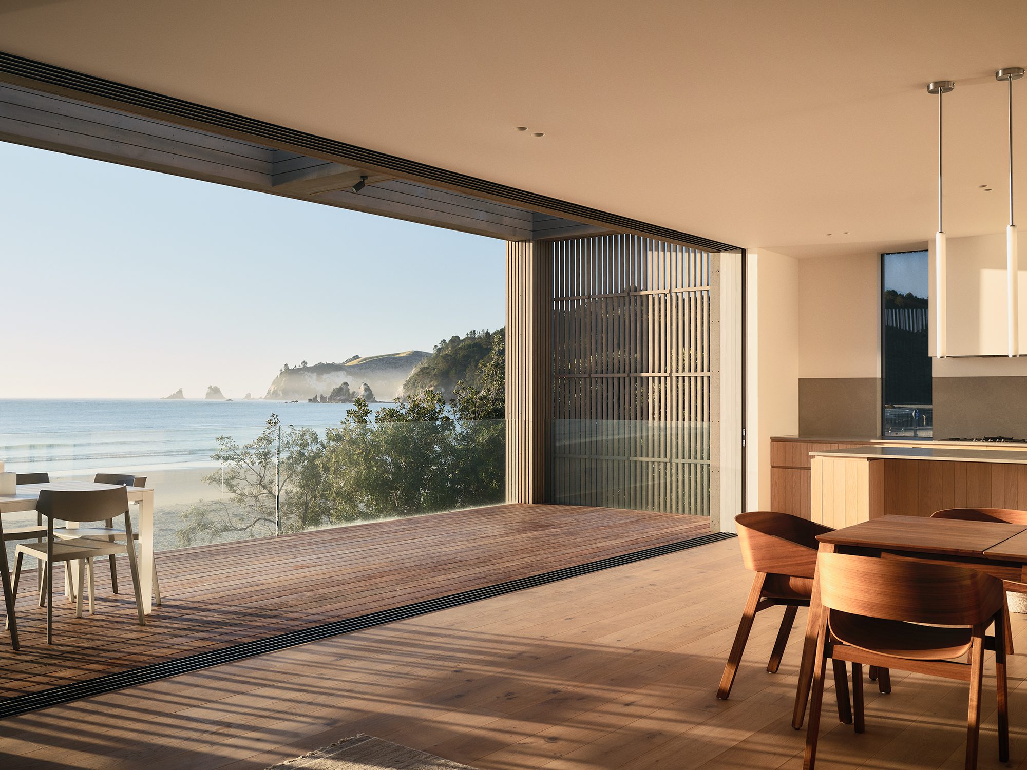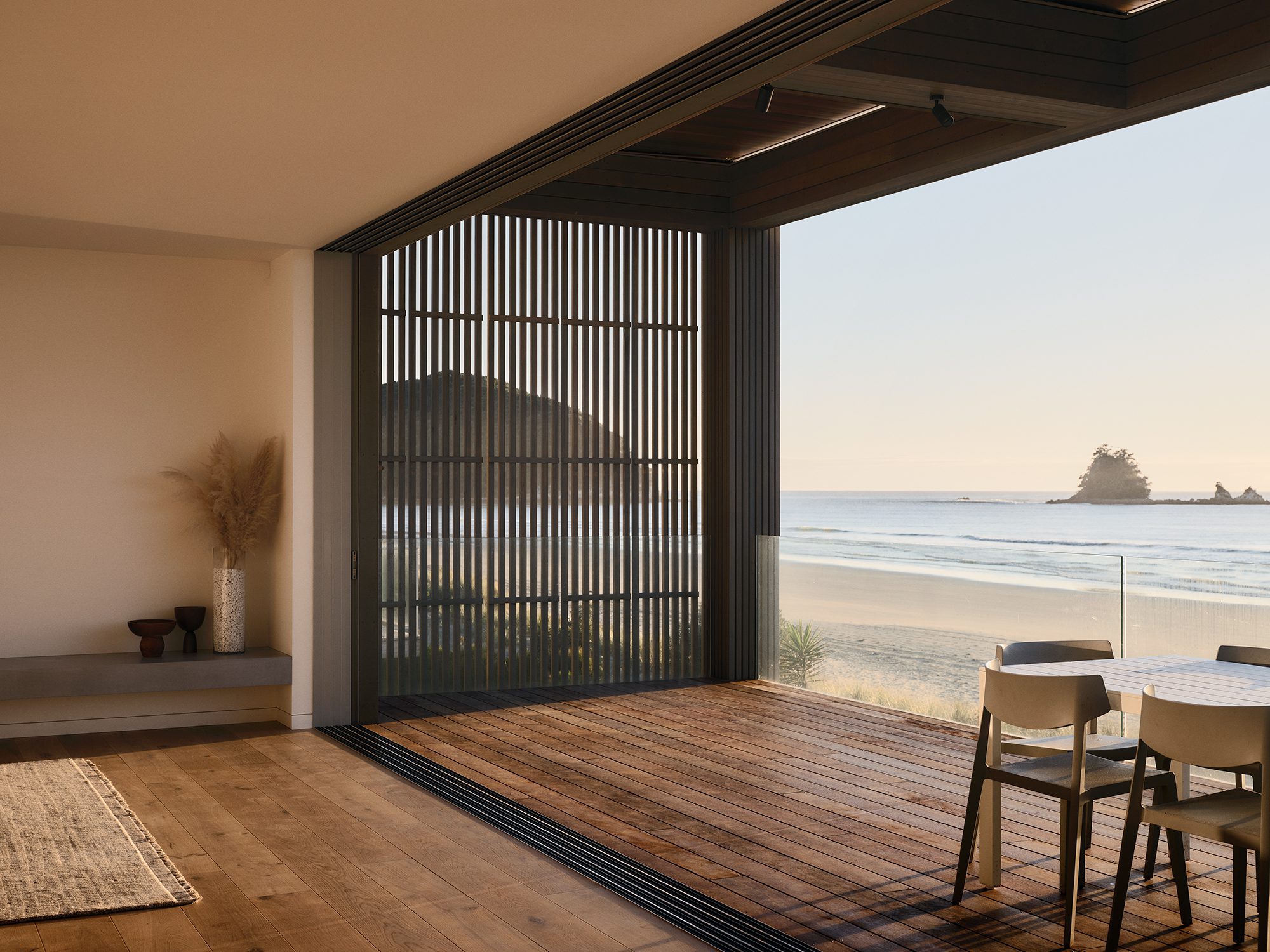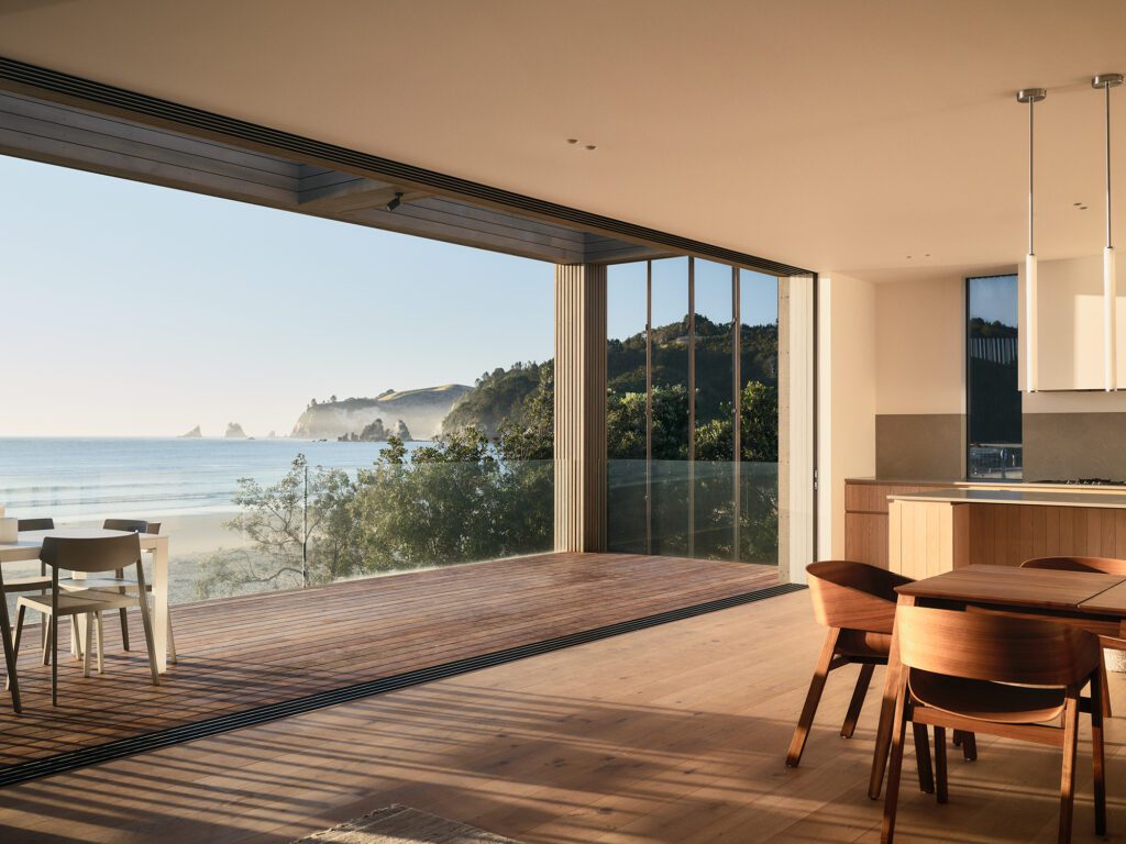 There’s a gentle melody to this Coromandel holiday home, which was designed to entertain and accommodate anywhere from 2 to 30 people with ease. It is a place that effortlessly opens and closes — to the ocean, the light, and the sky.
