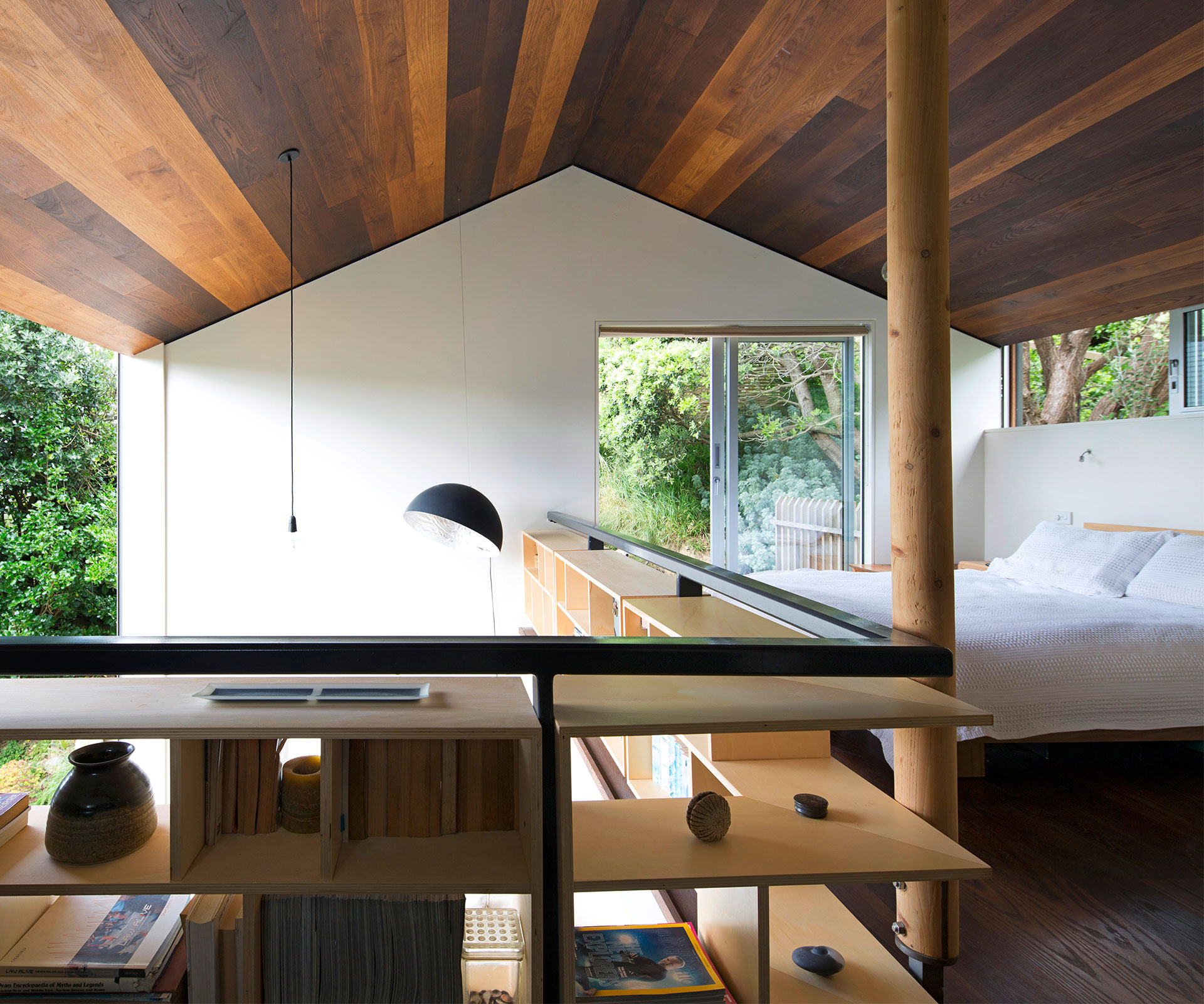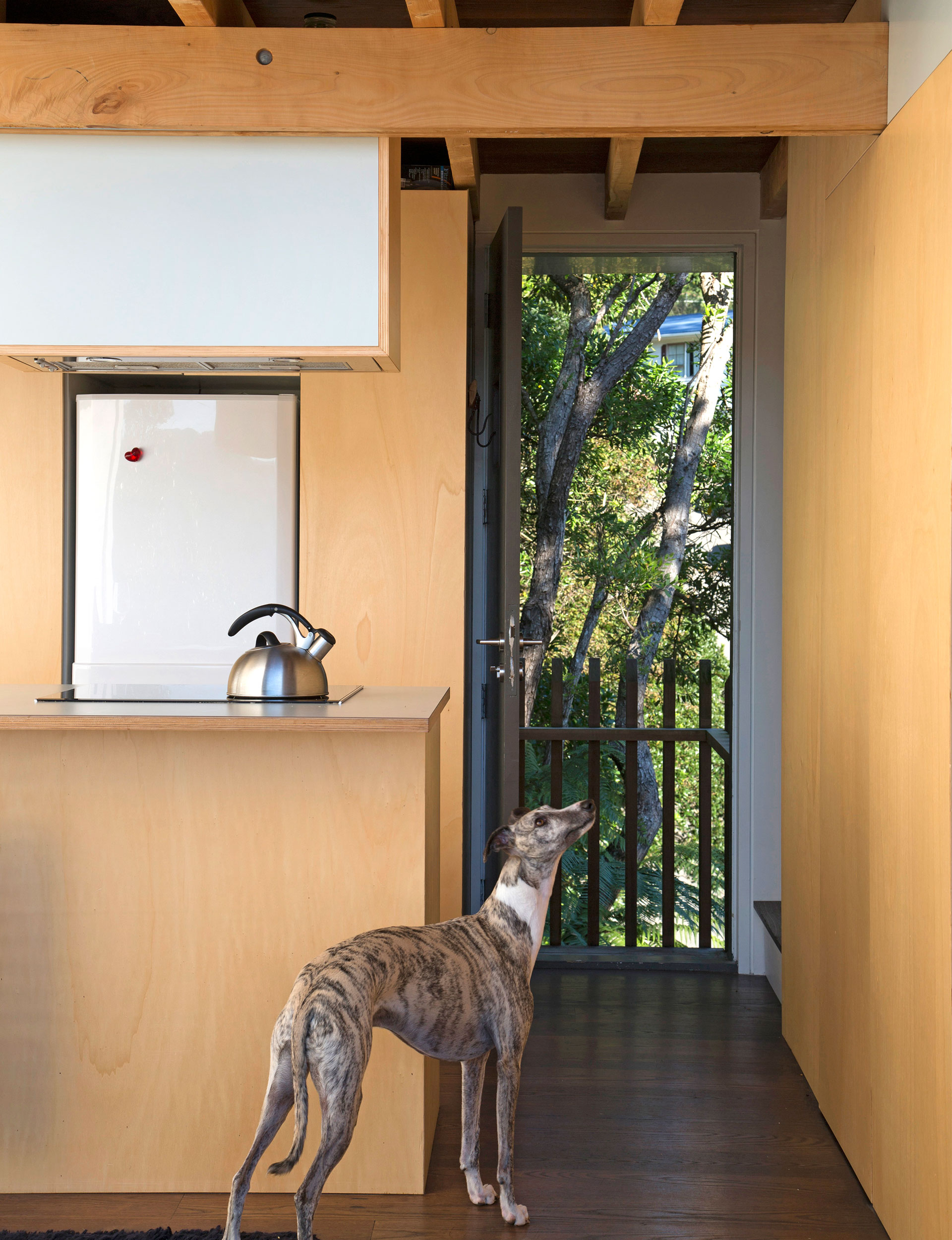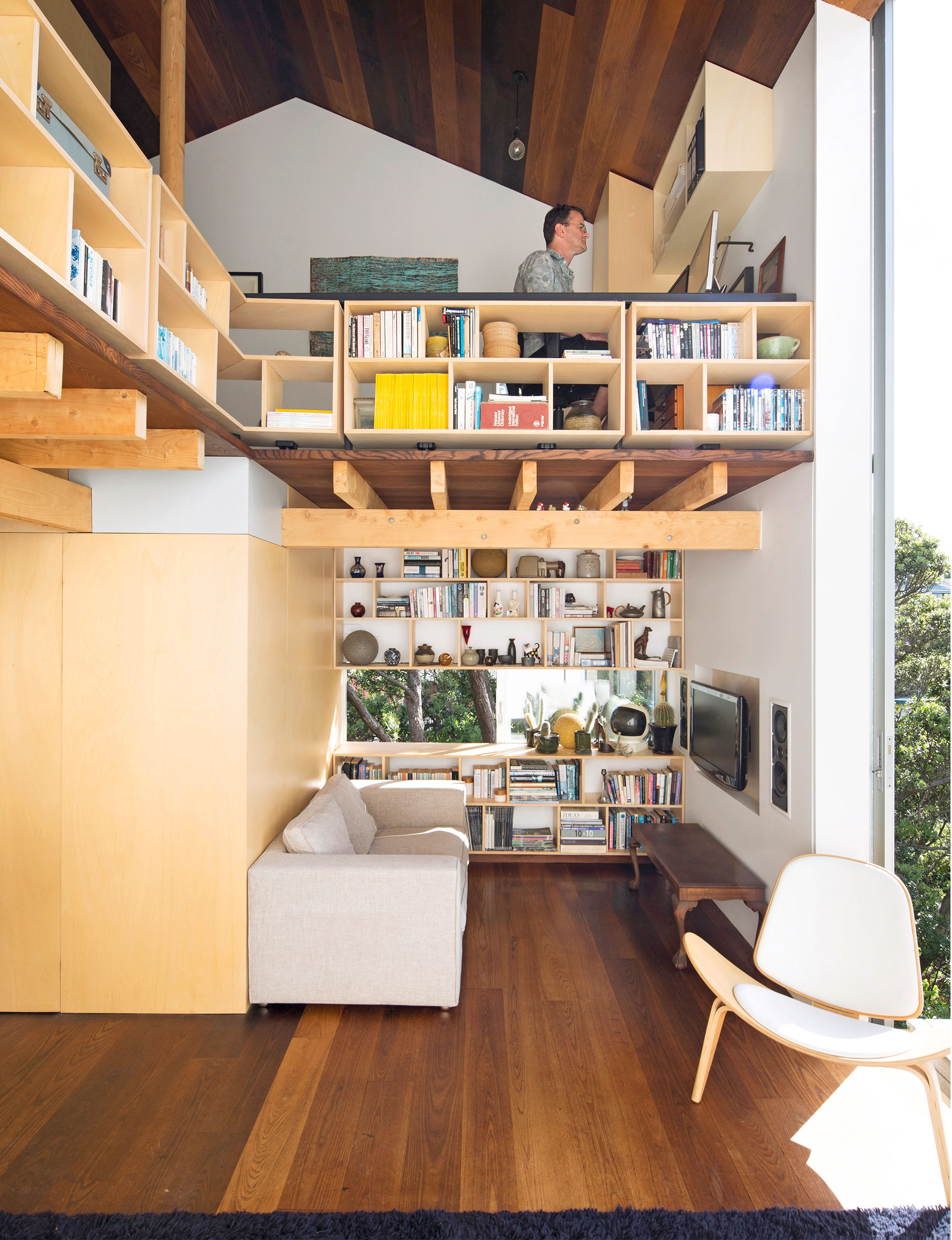 The application of Masuzawa’s principles simplified the design of Simpson’s Wellington home, which features a kitchen, living area and bathroom downstairs, and a sleeping area and study on the mezzanine floor above. “It gets pretty cosy with a crowd,” Simpson says – they’ve had as many as 12 friends over for dinner simultaneously – “but what’s interesting about this place is that while it’s small, it’s so open the rooms don’t feel it. None of it feels poky.”