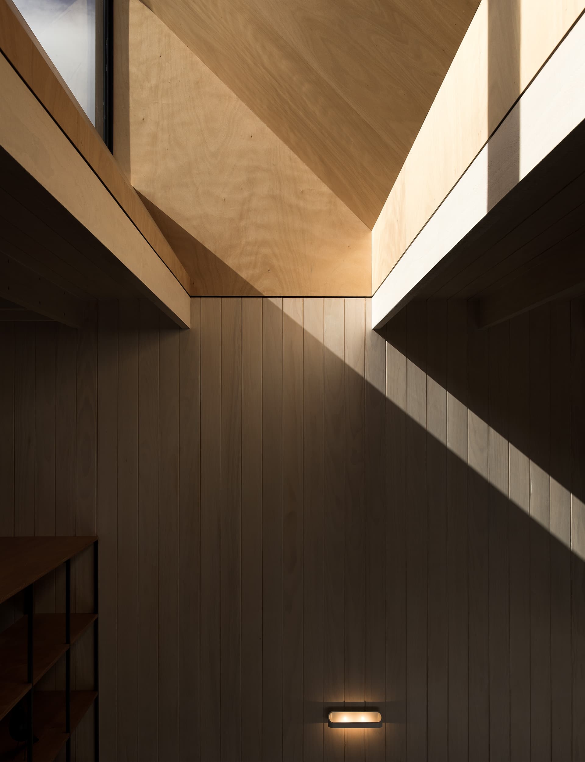 Liz Tjahjana: I enjoyed crafting striking details, like the north-facing 45-degree chisel window that draws light into the double-height volume and the retractable cedar screen on a rack-and-pinion system, which is operated from inside of the bedroom. Working with the wonderful builders at Avenue Homes to realise these details was fabulous.