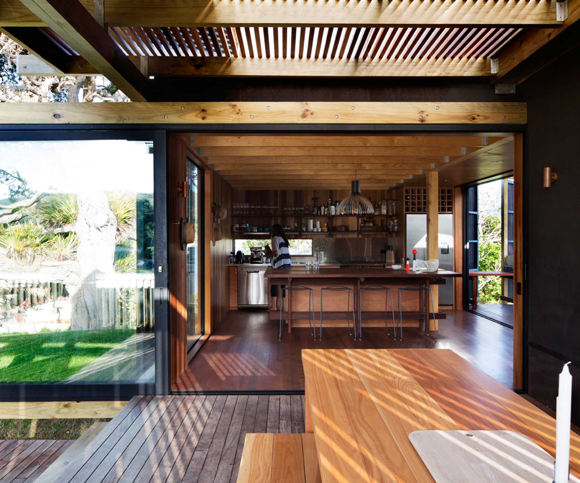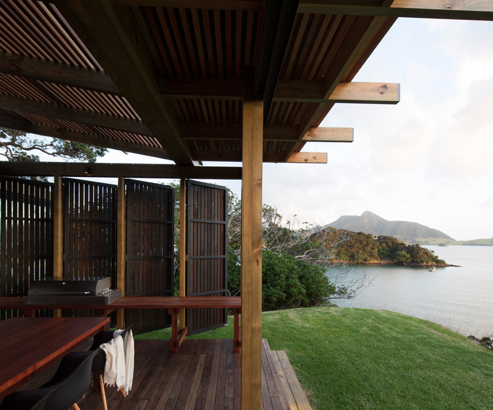 Lance It’s so rich in view in all directions that it’s almost awkward, so we tried to use the house as a viewfinder to crop views, edit out certain areas, focus your view to certain areas. Regarding the exposure, we’ve found there’s no such thing as a prevailing wind condition in summer. The demands on these baches in terms of creating spaces that get away from the wind are more and more difficult. The strategy is to have two decks and even those decks need layers.