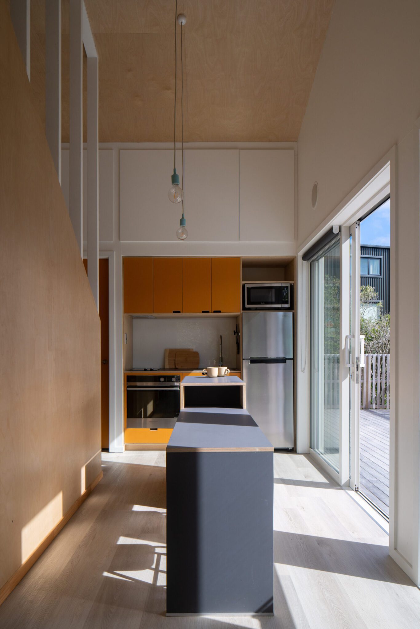 A tenant has now moved in and the pair has decamped back to their own pad. With a neighbour who is also the proud owner of a like-minded FAB series home, only in red, it’s quite the community. Cecile had a sudden realisation when she stood atop the hill opposite to photograph the finished product and looked across at the trio. The respective red, white, and blue cladding could be representative of the French flag. “I had no idea that’s what we had done,” she says. Fortunately, it’s the colours of the New Zealand flag, too. These small but significant buildings belong in our future.