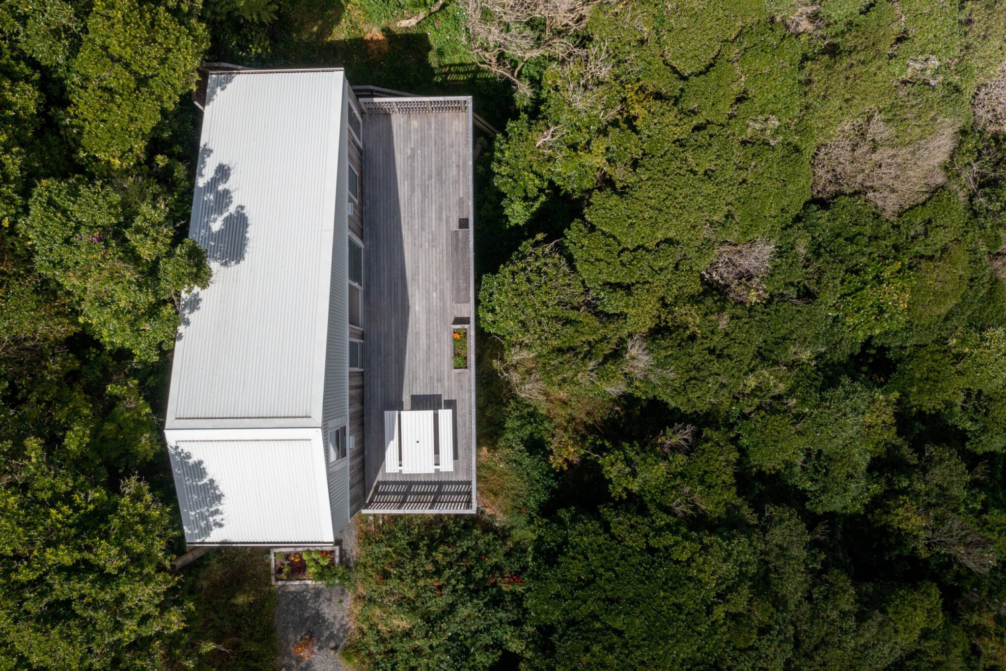 Ingenuity and muscle power to the rescue. “Aaron is a warrior,” says Cecile. “We cut a narrow track through the bush and installed a rail and trolley to bring the materials up. We were not colonising the ground; we were gently landing on it.”