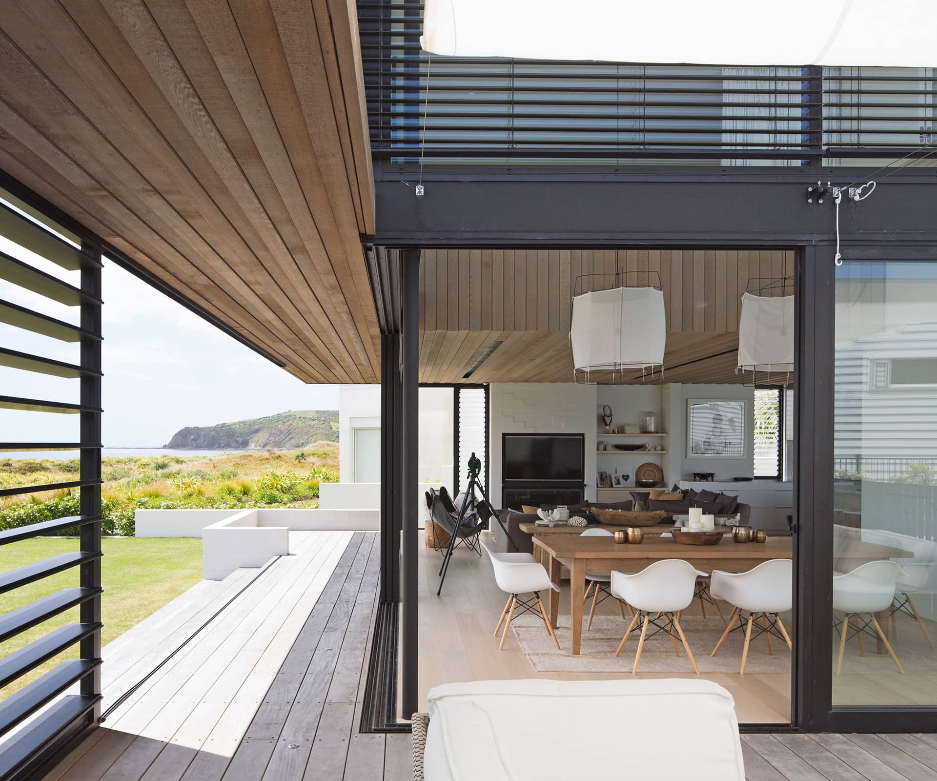 The clients sought a casual and comfortable family holiday home, being self-professed non-minimalists. They wanted to take advantage of the sea views, but also have ways to shelter from wind and harsh sun when needed.