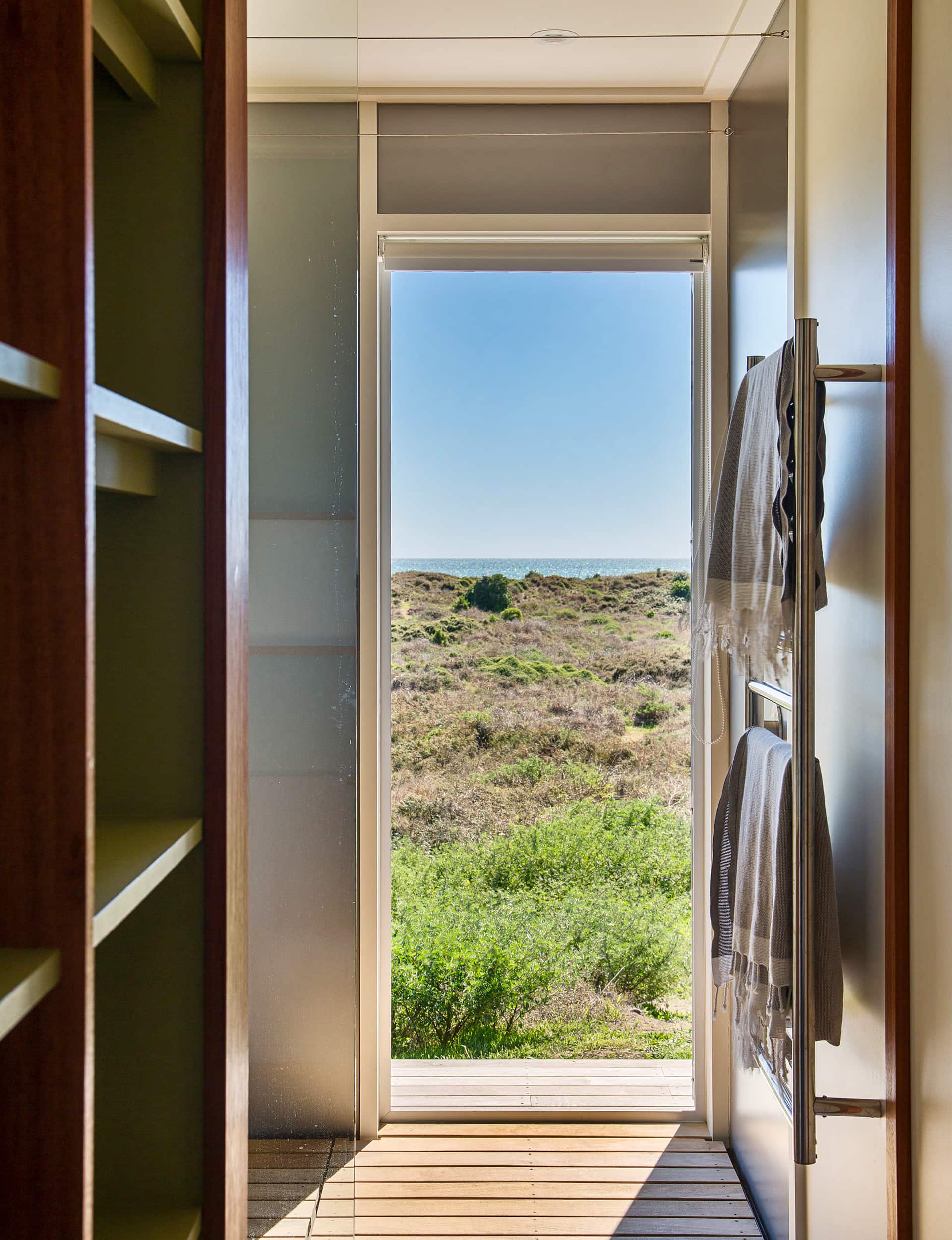 A colour palette that we had to adhere to came with the subdivision. It’s quite muted and soft, no bright colours, but I wanted to give it the richness that some of our other beach houses have. So we painted the sides of some of the battens different colours. When you look at the house front on, the colours are muted. But on an angle, you get colour. It picks up on the grass thing – if you look at a blade of grass, green or dried, there will be myriad colours.