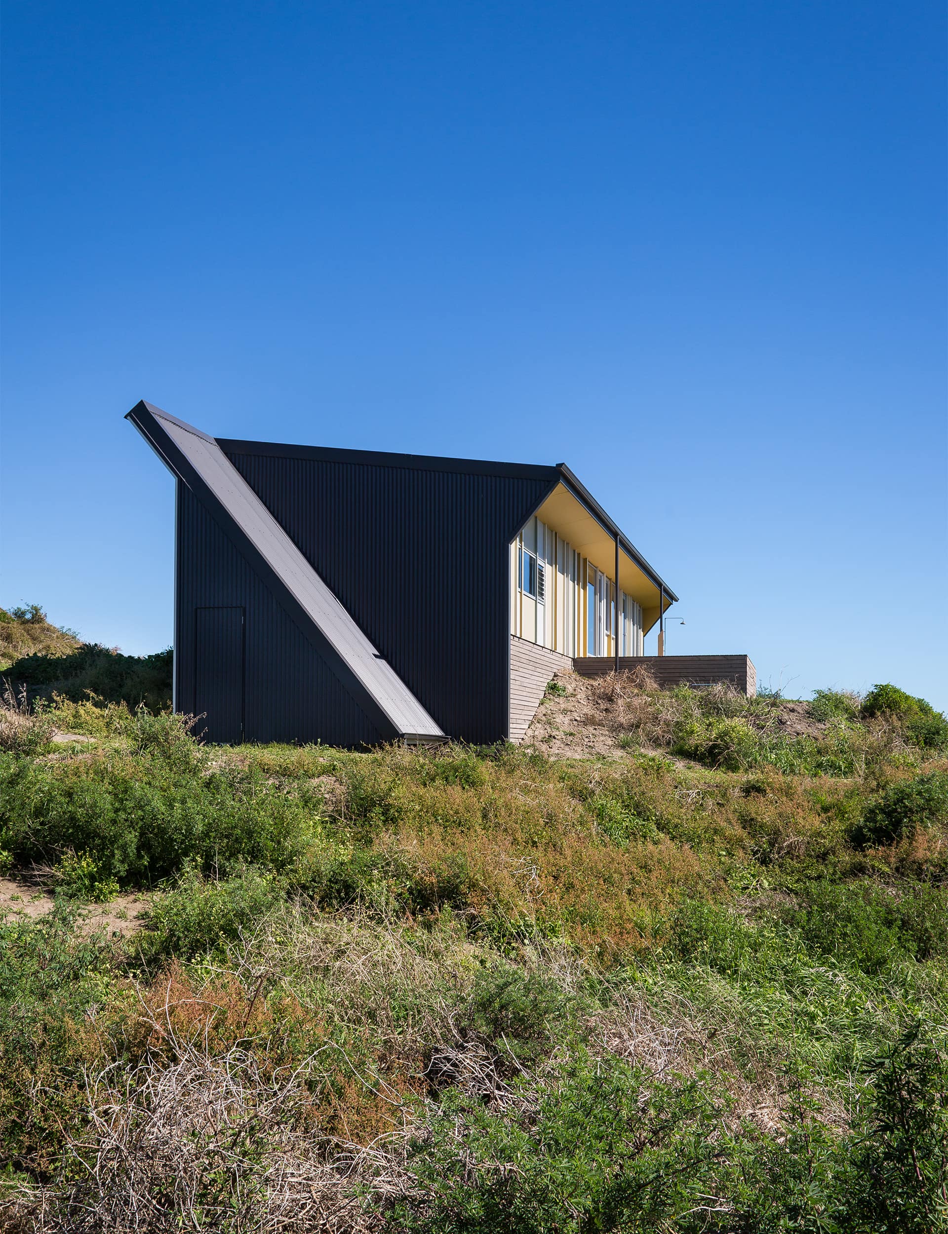 Its coastal site proved a challenge but the outcome was a striking angular bach that the architects involved thought the owners would say “heck no” to