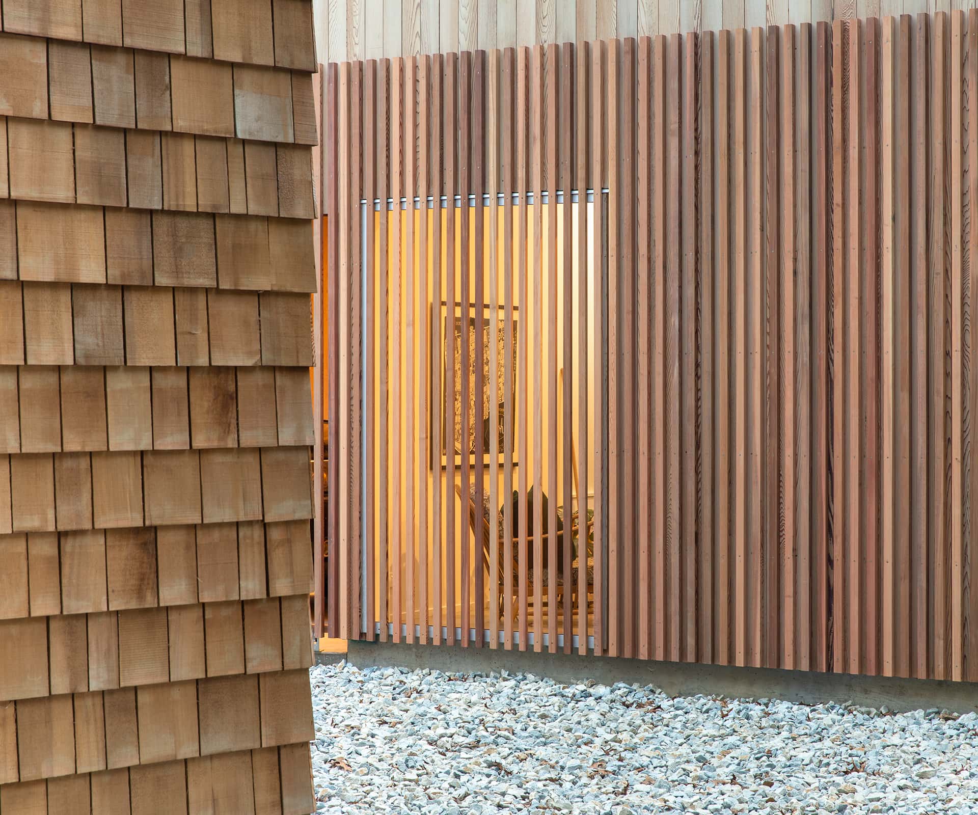 I love the shingled utility pavilion. It has so much texture, and I love the balance it gives the main house.
