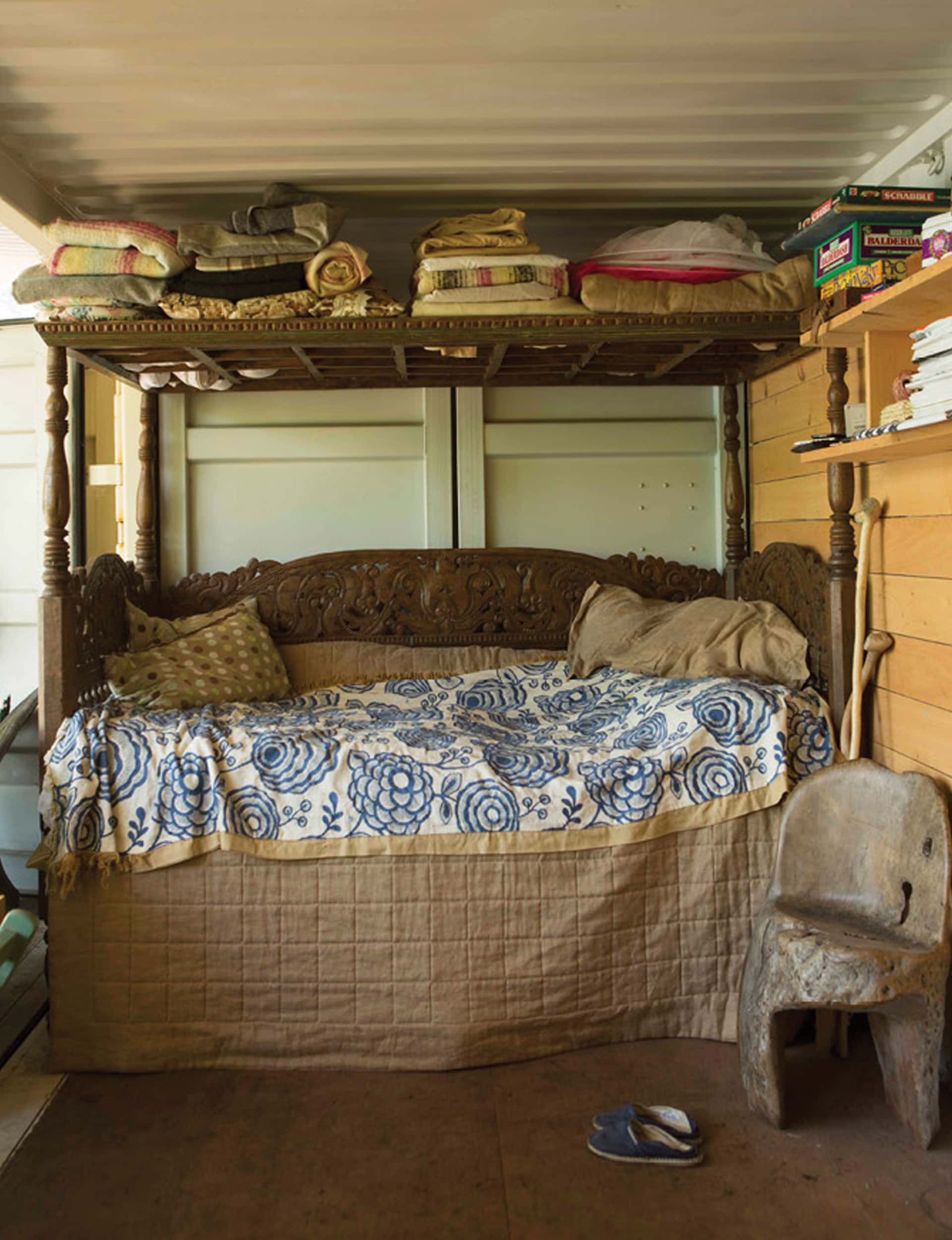 Most people would shy away from locating a two-and-a-half tonne container 30 metres uphill from the high-tide mark in a place where no vehicles – let alone cranes – can travel. But Greg saw it as a challenge. The fit-out had to be prefabricated and everything packed into it, as it couldn’t be transported with the deck down or the roof on. My parents planned ahead, so that all the fittings were prepared for transportation and assembly at the site.
