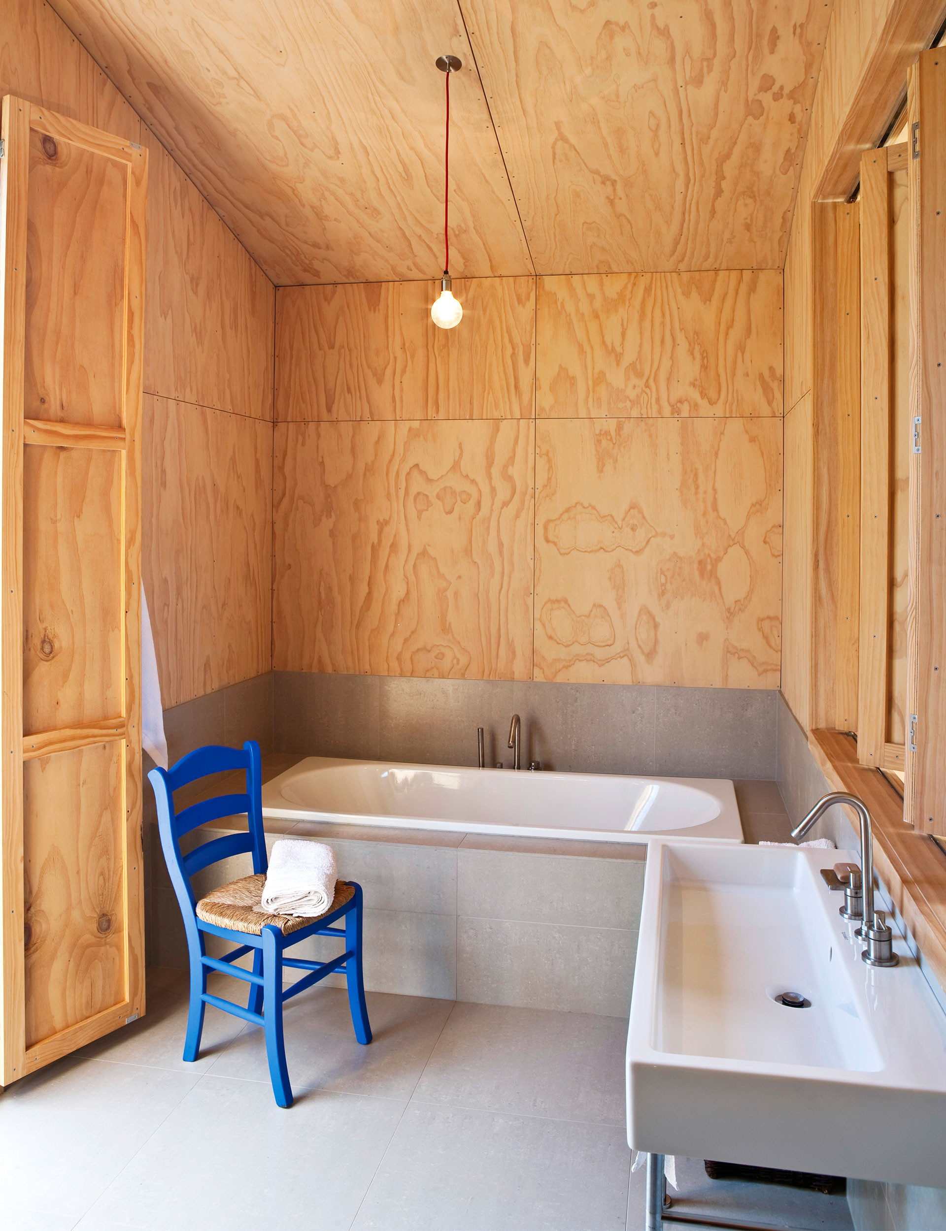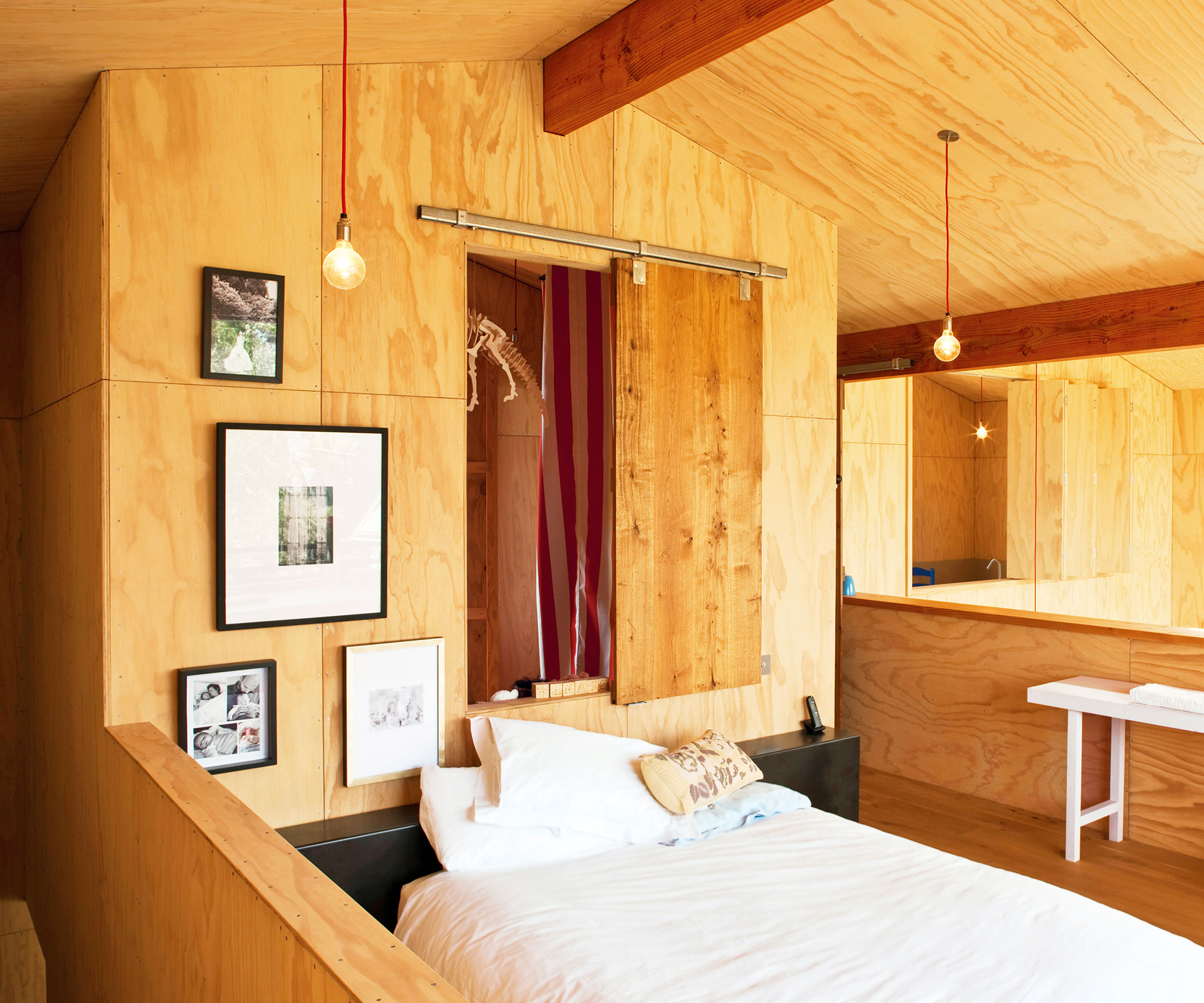 The main bedroom is in the mezzanine, along with a bathroom and a spare room that was occupied by August, the couple’s son, after he was born. The couple has since had another child and added two small bedrooms. Designing their home, Abbe says, “forced us to think about how we wanted to live.”