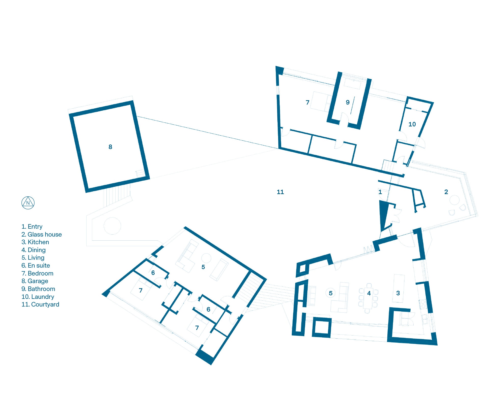 Rather than the expected – a home that makes the big call with a singular focus – the tyranny of choice was deftly avoided by a plan that resembles a radiating star, with elements fragmented around a central core. Richard calls these pavilions ‘view catchers’ and a cobbled forecourt is the centrifugal force that tethers these points to each other.
