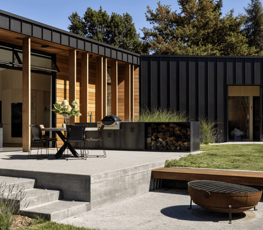 As the clients are keen socialites, this area includes a timber and concrete conversation pit with a fire bowl at its centre. It has an impressive outdoor cooking area and space for a small alfresco dining table. The views here are postcard ready.