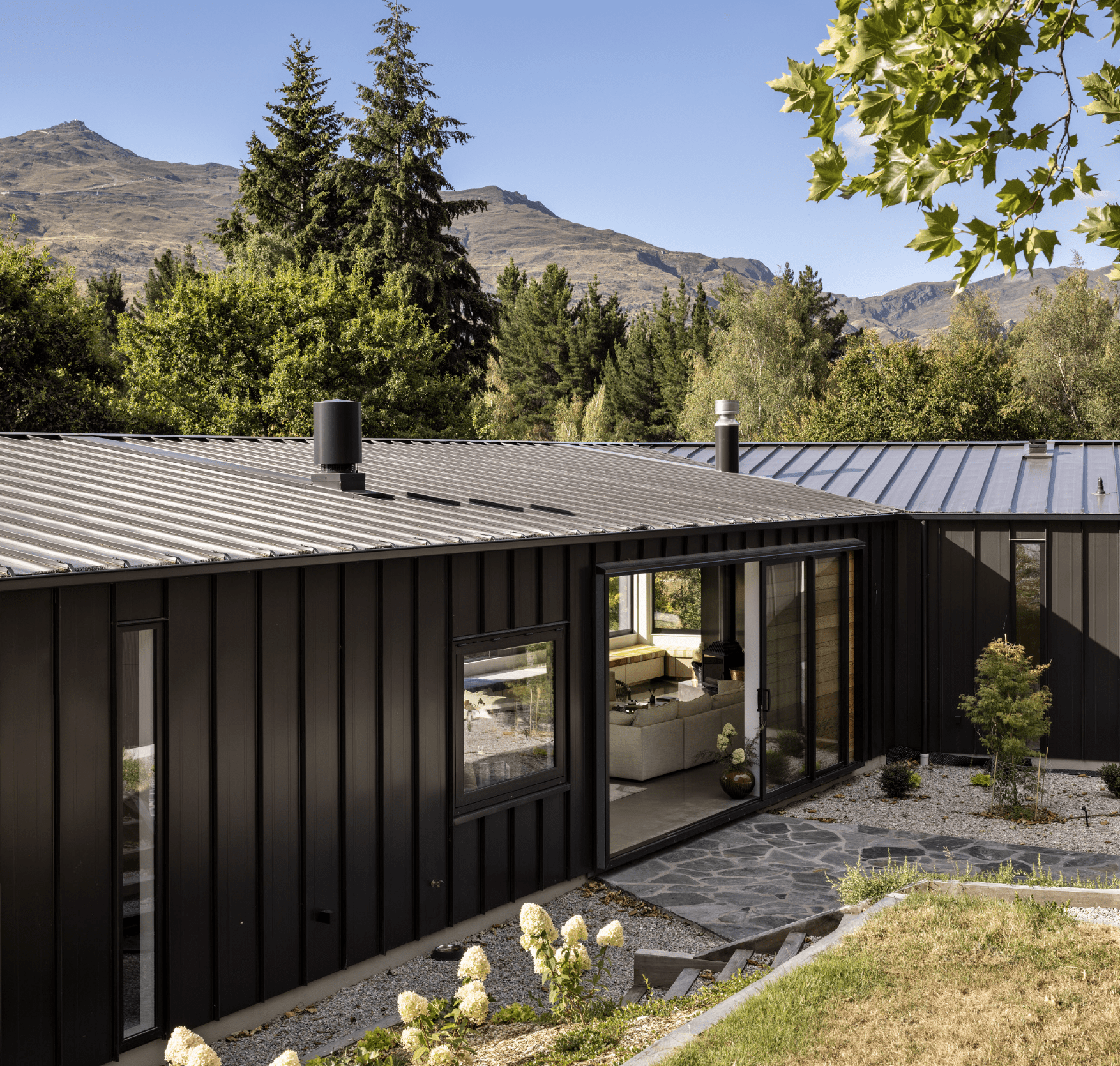 A zig-zagging black form lounges in the sun among old trees and the serrated mountainscape visible from the Wakatipu Basin. Its architect, Anna-Marie Chin – winner of Home of the Year 2022 – tells us more.