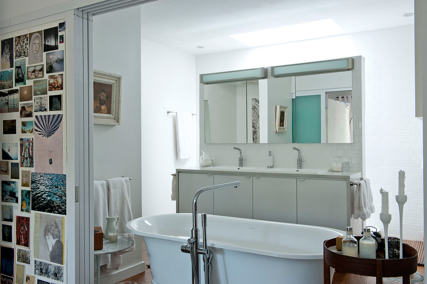 Anthony Goicolea It’s where I start my day, so I wanted the bathroom to be airy and light. The shower is an open walk-in shower with a large skylight overhead. It feels great to shower with the morning light streaming in.