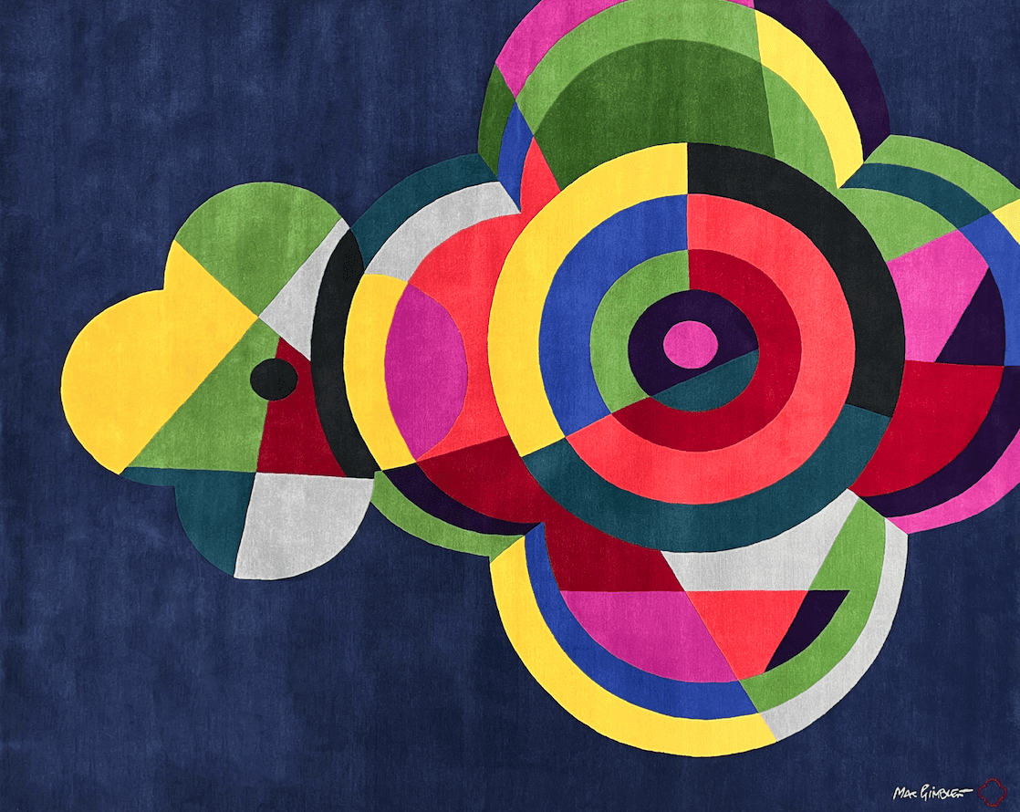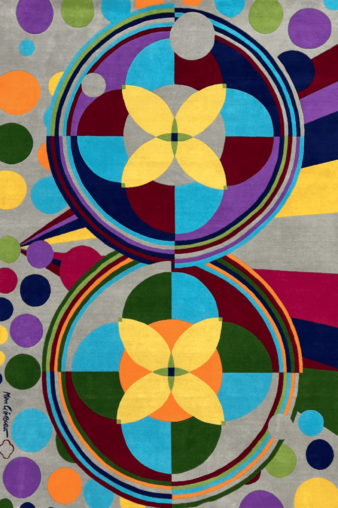 “Collaborating with Lucy Tupu on custom rugs and carpets has been a real treat for me,” Max says. “The element of people walking over and sitting on these objects, as opposed to simply viewing them, is refreshing. What is under our feet is stabilizing and grounding. There’s also a civilizing aspect, designating the functions of the various rooms her rugs inhabit.
