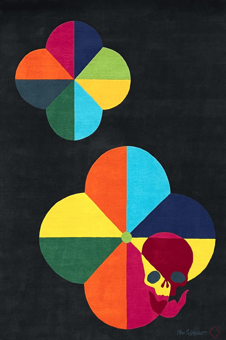 “Carpets and wallpaper were the things that lasted and lasted in my childhood homes. I am thrilled Lucy has made some beautiful rugs with my inks on paper, which were inspired by ancient Tantric works. This really comes through.”