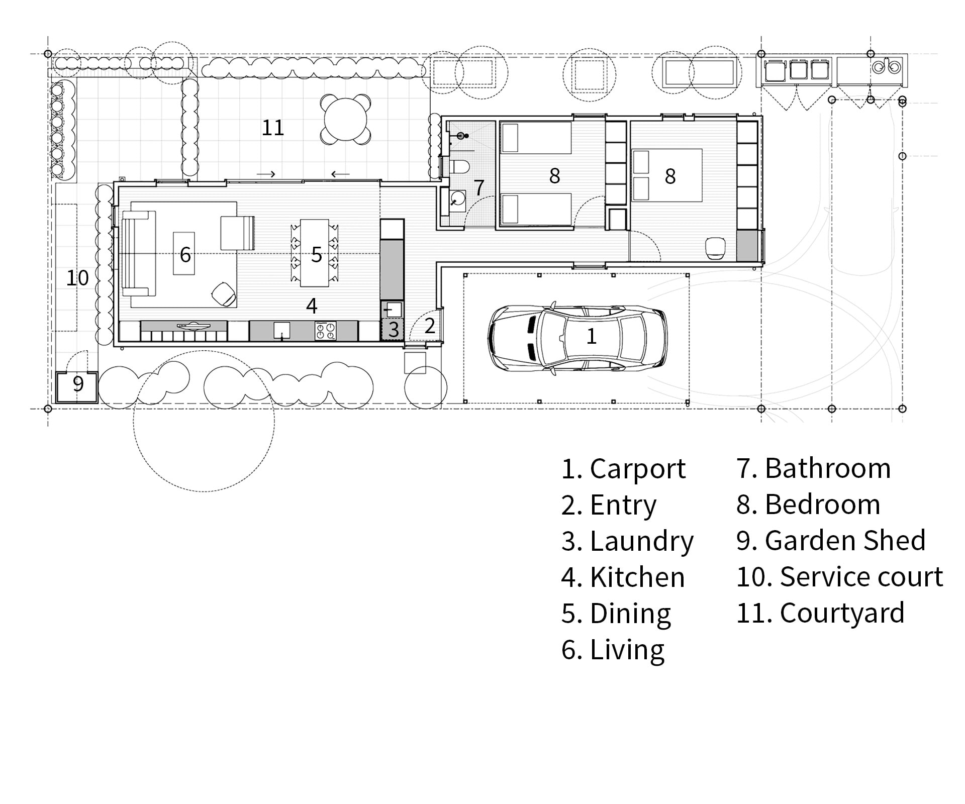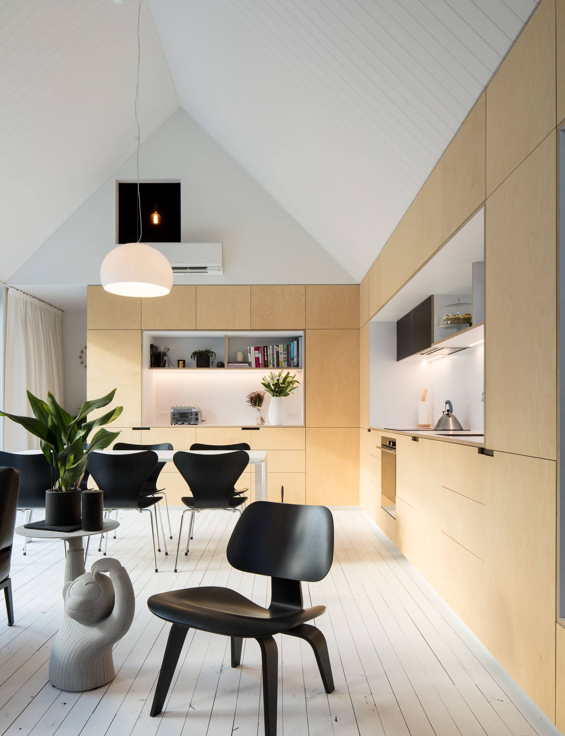“They were quite charming and were close to people’s work,” he says. “And I kept wondering why we weren’t building houses like this for professional couples now. So we thought we’d make a modern interpretation.”