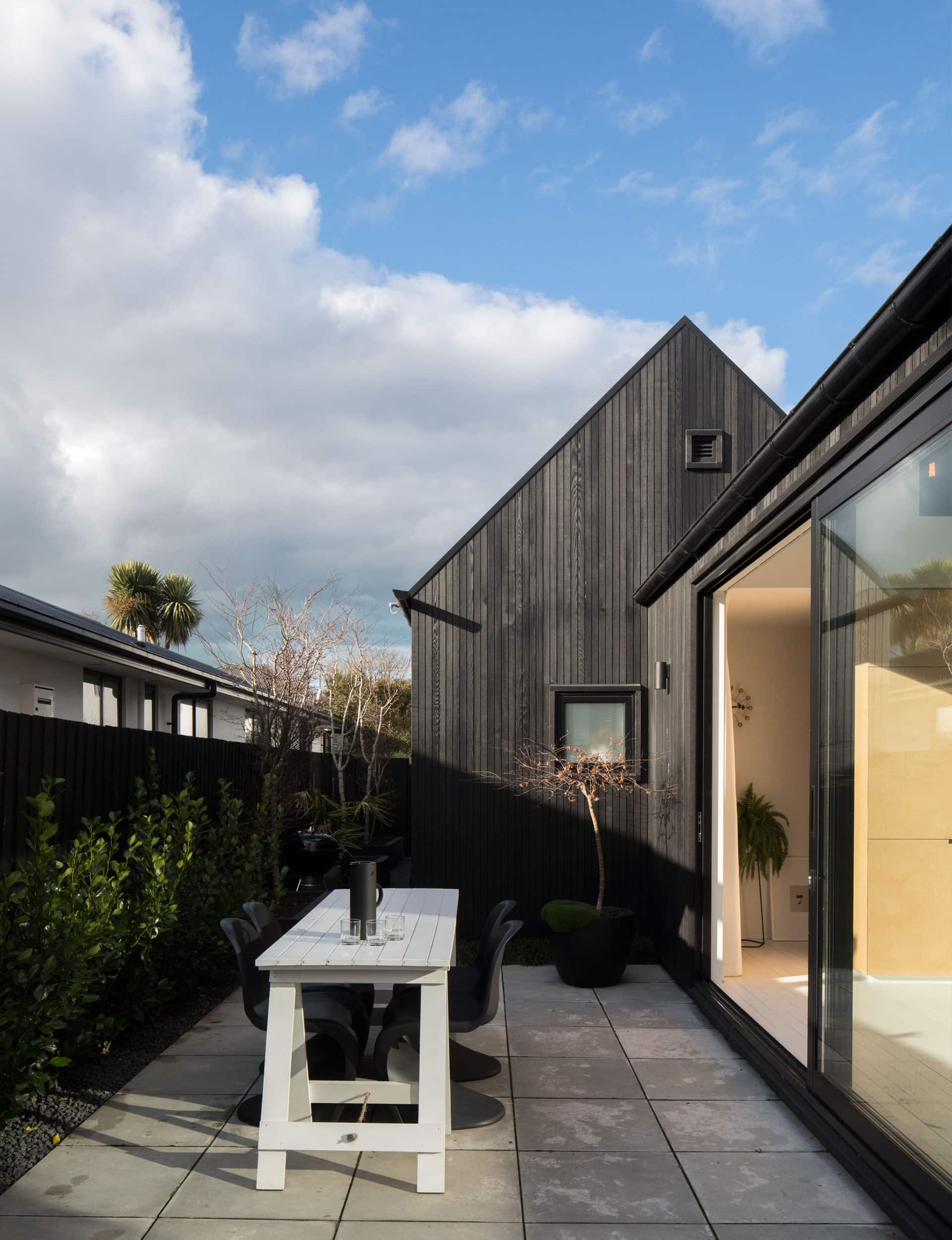 The house is relatively solid to the south, east and west elevations, with only a few considered windows to draw in natural sunlight. This solidity not only helps mitigate any potential privacy issues between properties, but also significantly reduces street noise from nearby Bealey Avenue (which is one of Christchurch City’s main arterial roads that the boy racers love to frequent). The northern elevation is screened with the inclusion of some maple trees and a griselinia hedge along the boundary, strategically placed outside the external doors and windows to diffuse the outlook to the neighbouring property.