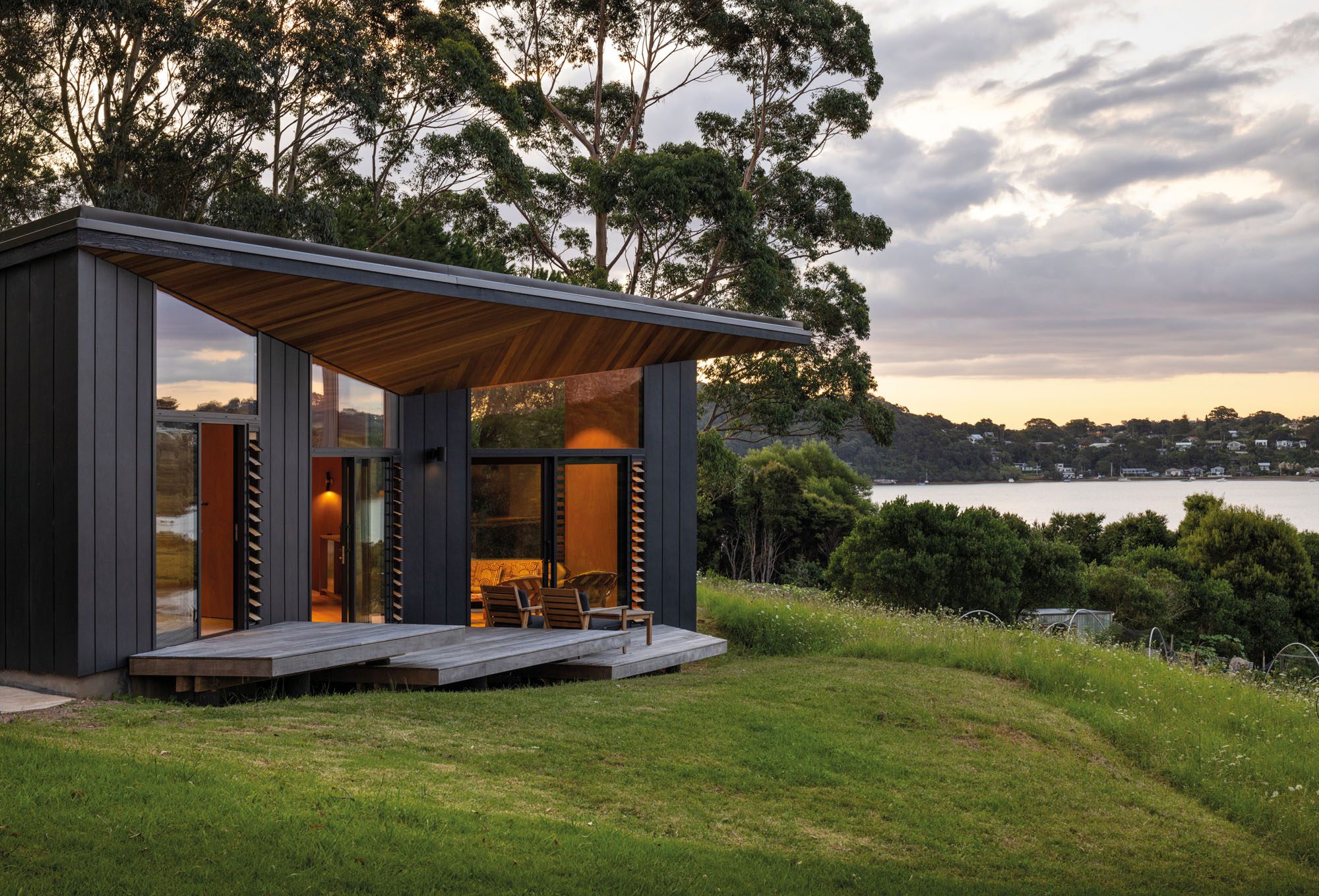For owners Joy and Brett McDonald, this house is deeply personal. Built by their son-in-law, and paying heed to Brett’s architect father’s butterfly-roof designs, it is layered with family and craft. “It’s like living in a work of art,” Joy says. And it is. Light, quiet, elemental. This home doesn’t impose, it lands softly and sits gently as if ready to take flight — despite its innate permanence and careful integration into the lively flora and fauna of its site.