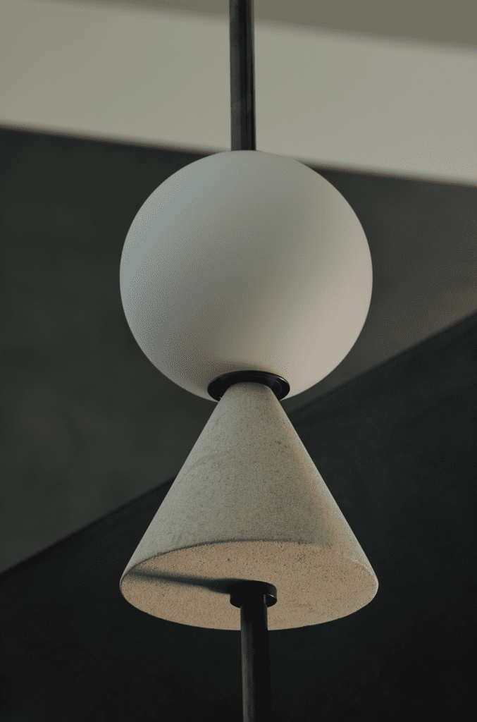 Entirely handmade, the pendant was crafted from Ōamaru stone, mouth-blown globes and Nightworks’ signature Midnight Brass rods. “The materials are thoughtfully arranged to create a striking visual narrative, with the globes and stone pieces effortlessly connected by the hand-patinated brass rods,” Nightworks Studio’s co-founder and lead designer Ben Wahrlich says.