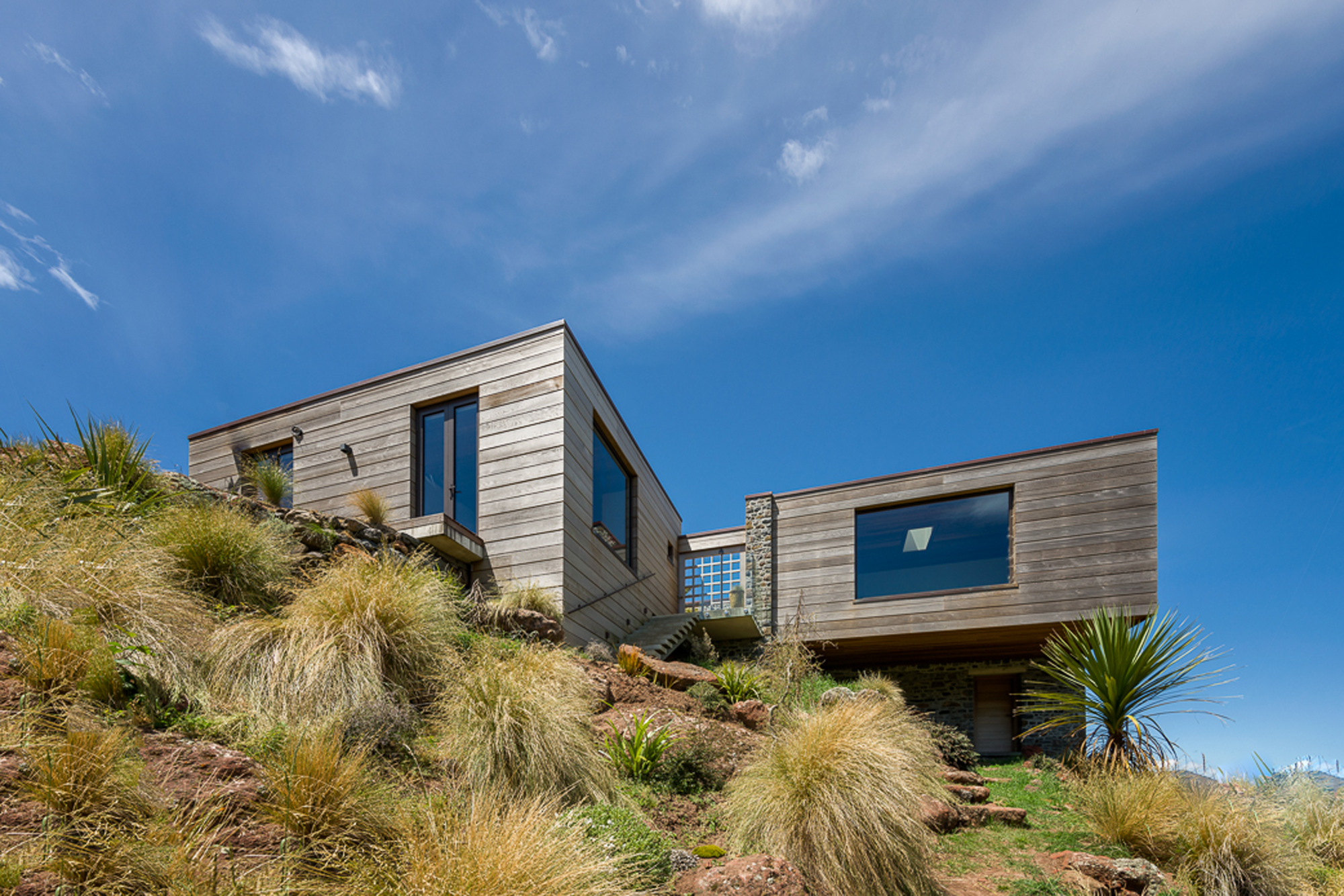 “On a site like this, we didn’t want to have garaging become the focus. We covered them in tussocks and whatever was growing here, but ultimately nature will take its course and that’s what we wanted.”