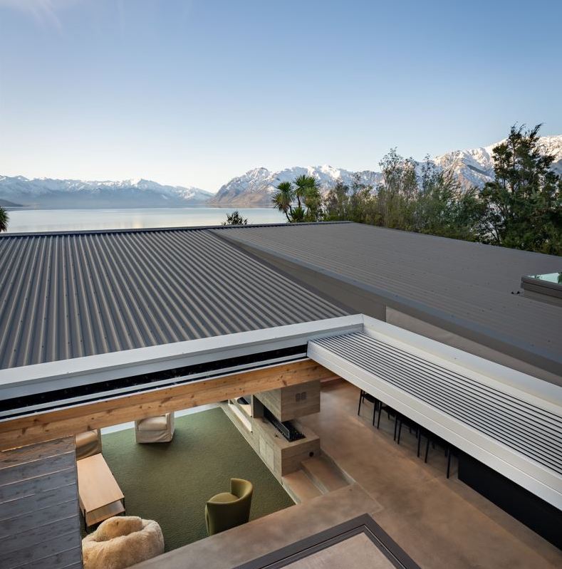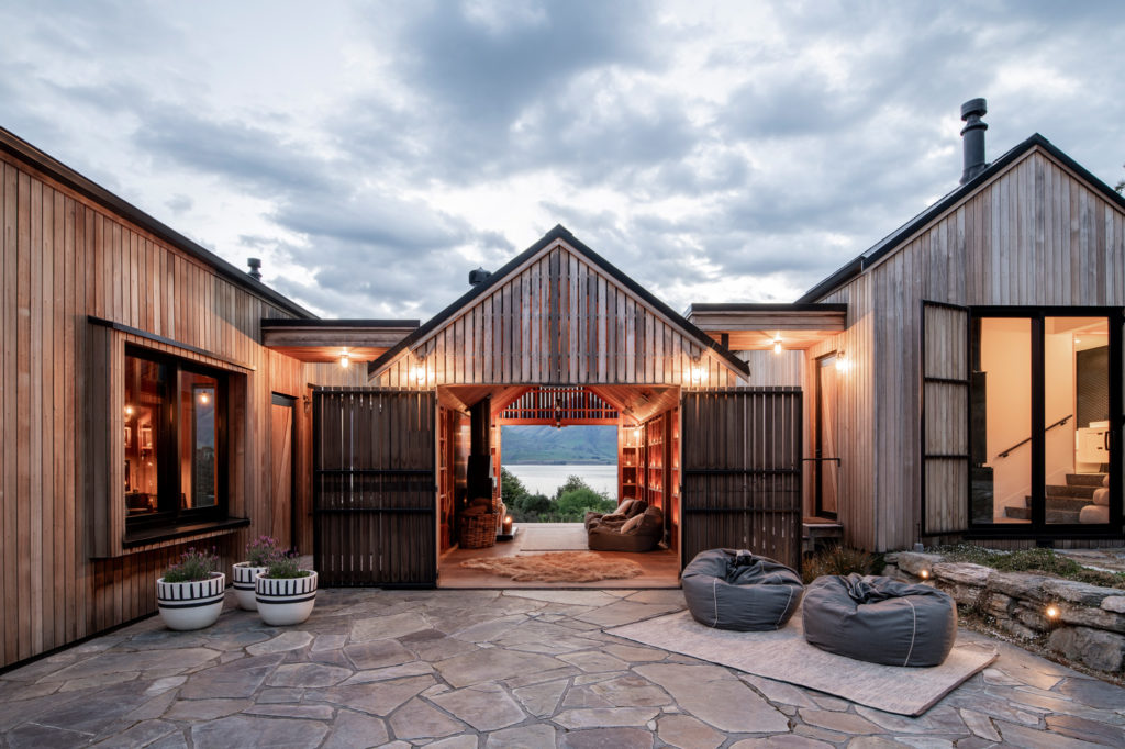 Reclaiming an old DOC carpark on the shore of Lake Hawea, this holiday home that opens to the sky is designed around a farming family’s get-togethers in the South Island.