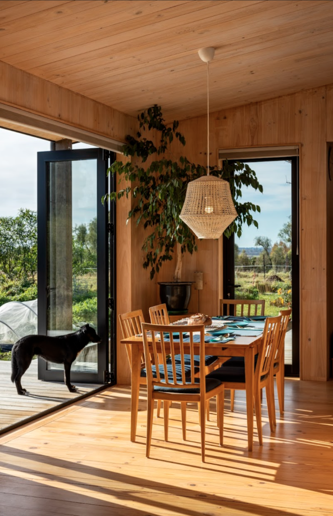 A 150m² off-grid home for two on Waiheke Island. Birdlife abounds; vegetables are grown and harvested on site year-round.