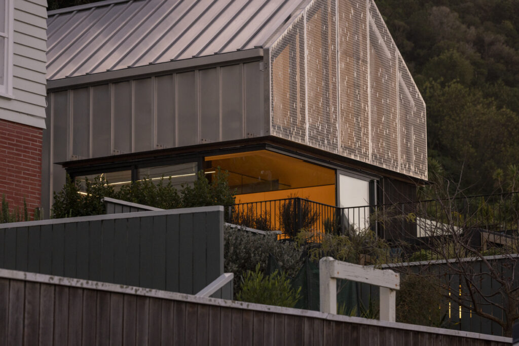 Between Wellington Harbour and a regional park, Parsonson Architects devised a playful dual dwelling cleverly connected by a bridged form.