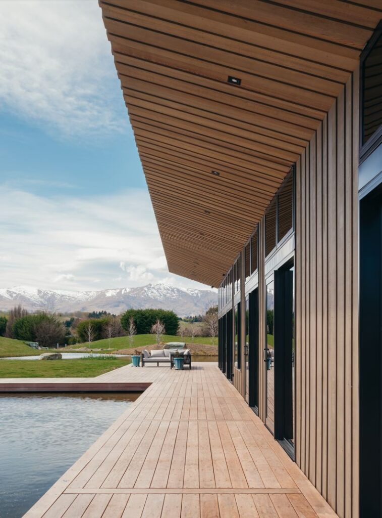 This contemporary country home in Central Otago is a place of unrivalled beauty, extending out towards and sitting in unity with the dramatic peaks of its low-lying alpine site.