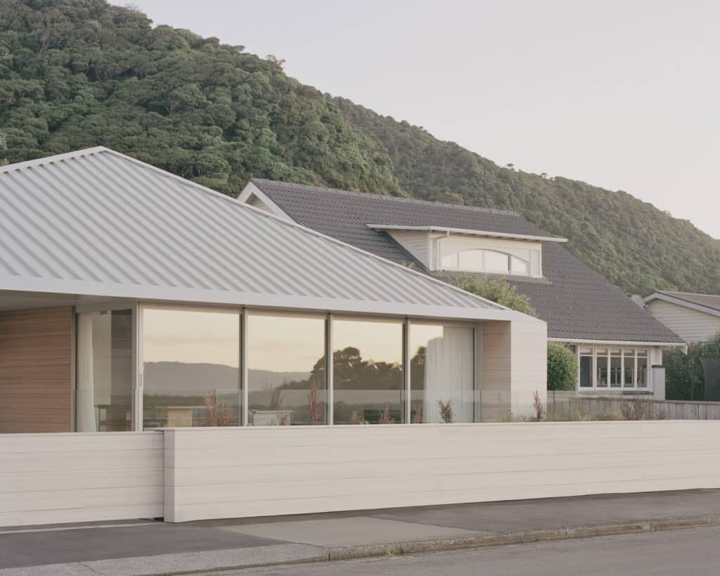 Between harbour and hills, this large, low-slung Wellington home is an intriguing but perfectly suited addition to its Eastbourne street.