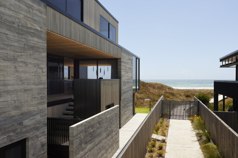 A large family home elegantly reaches out to meet Papamoa’s everchanging dunescape, folding indiscernibly into the public realm.