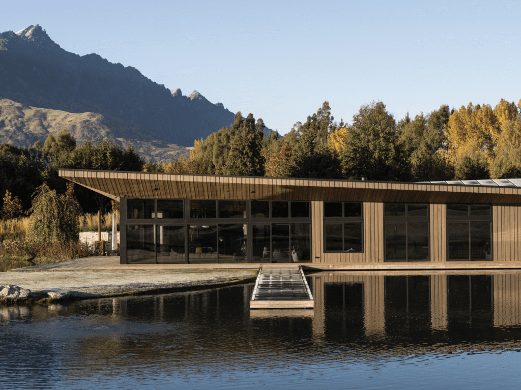 This highly sculptural home just outside Queenstown reaches out and responds to the water below and the peaks that rise around it.