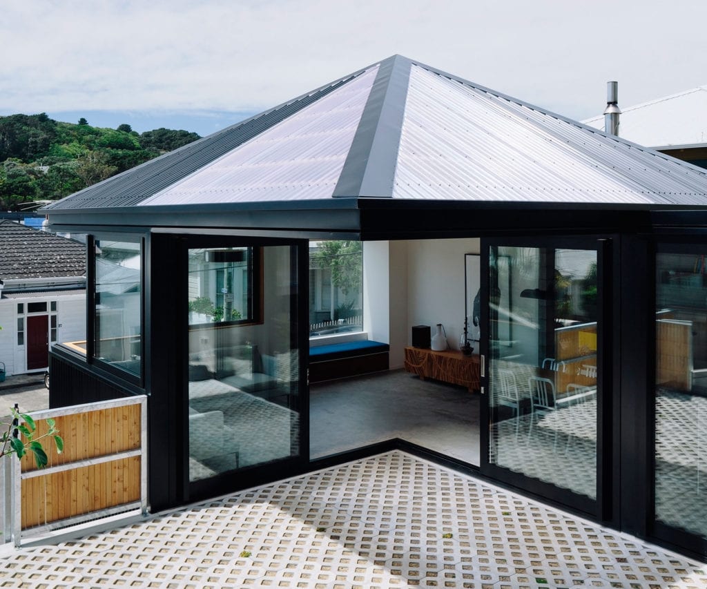 In the heart of Ōrākei, RTA Studio has designed a striking addition to a well-known streetscape. Powerful, enigmatic, and dynamic, its jagged roofline and folded steel form float above the land, inviting observation and curiosity.