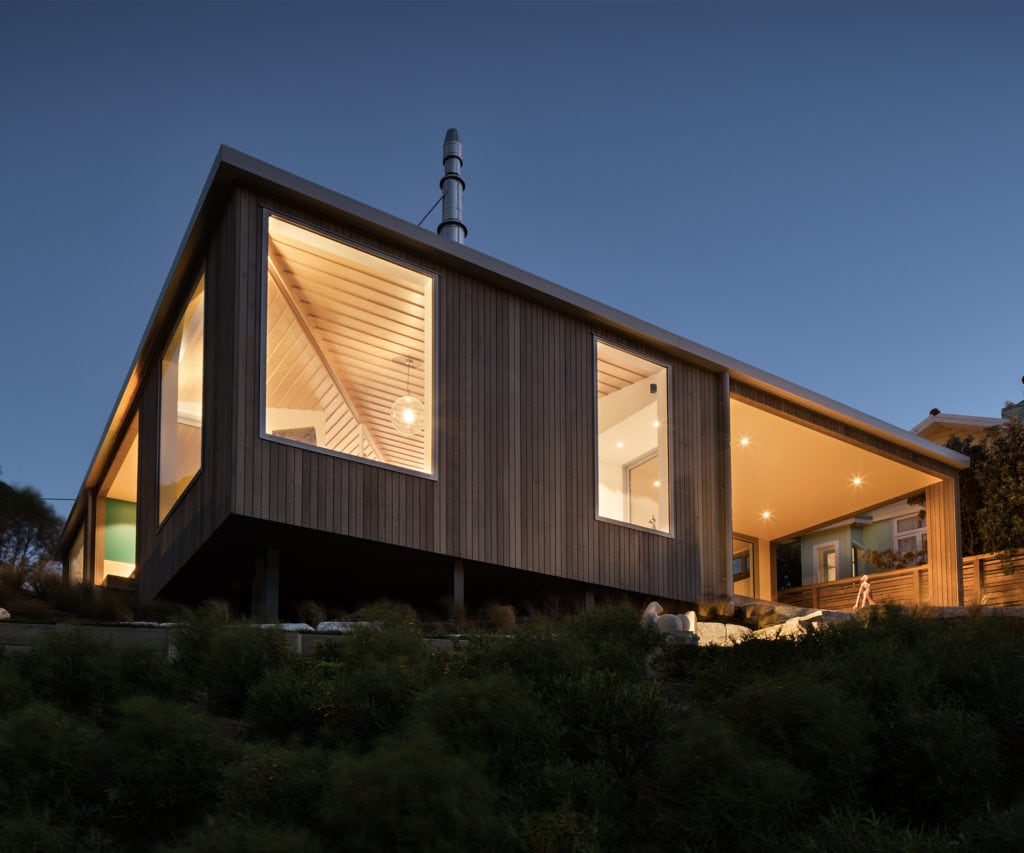 A 150m² off-grid home for two on Waiheke Island. Birdlife abounds; vegetables are grown and harvested on site year-round.