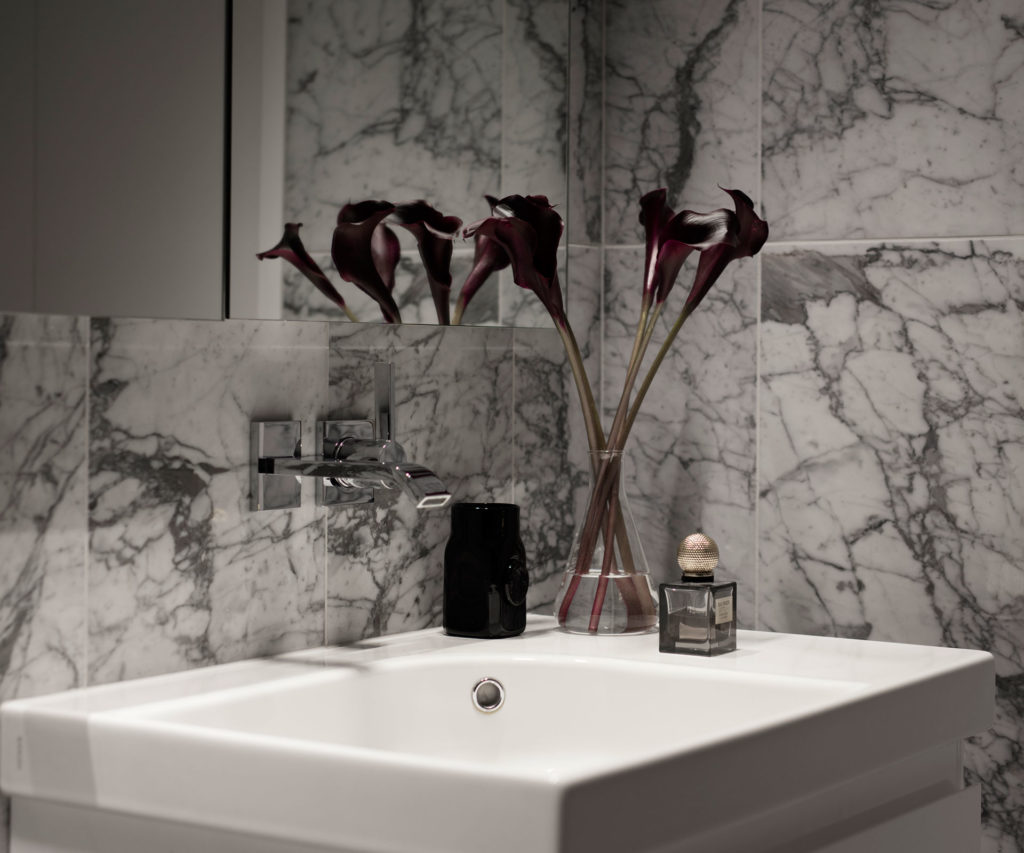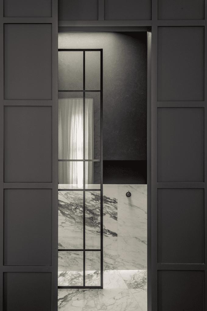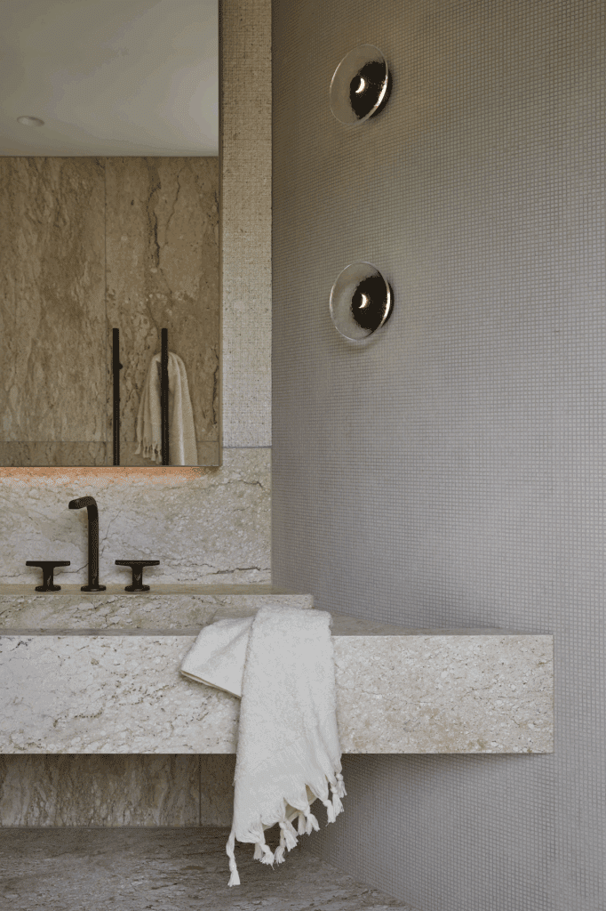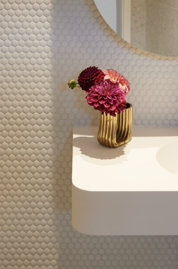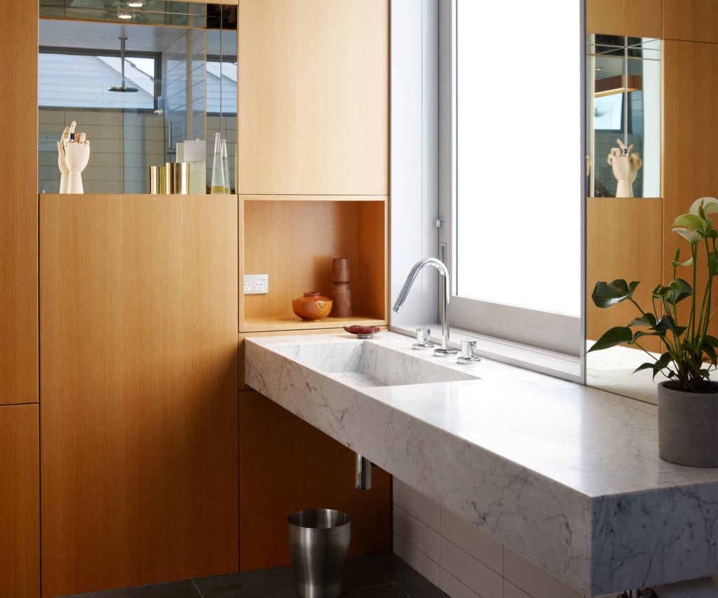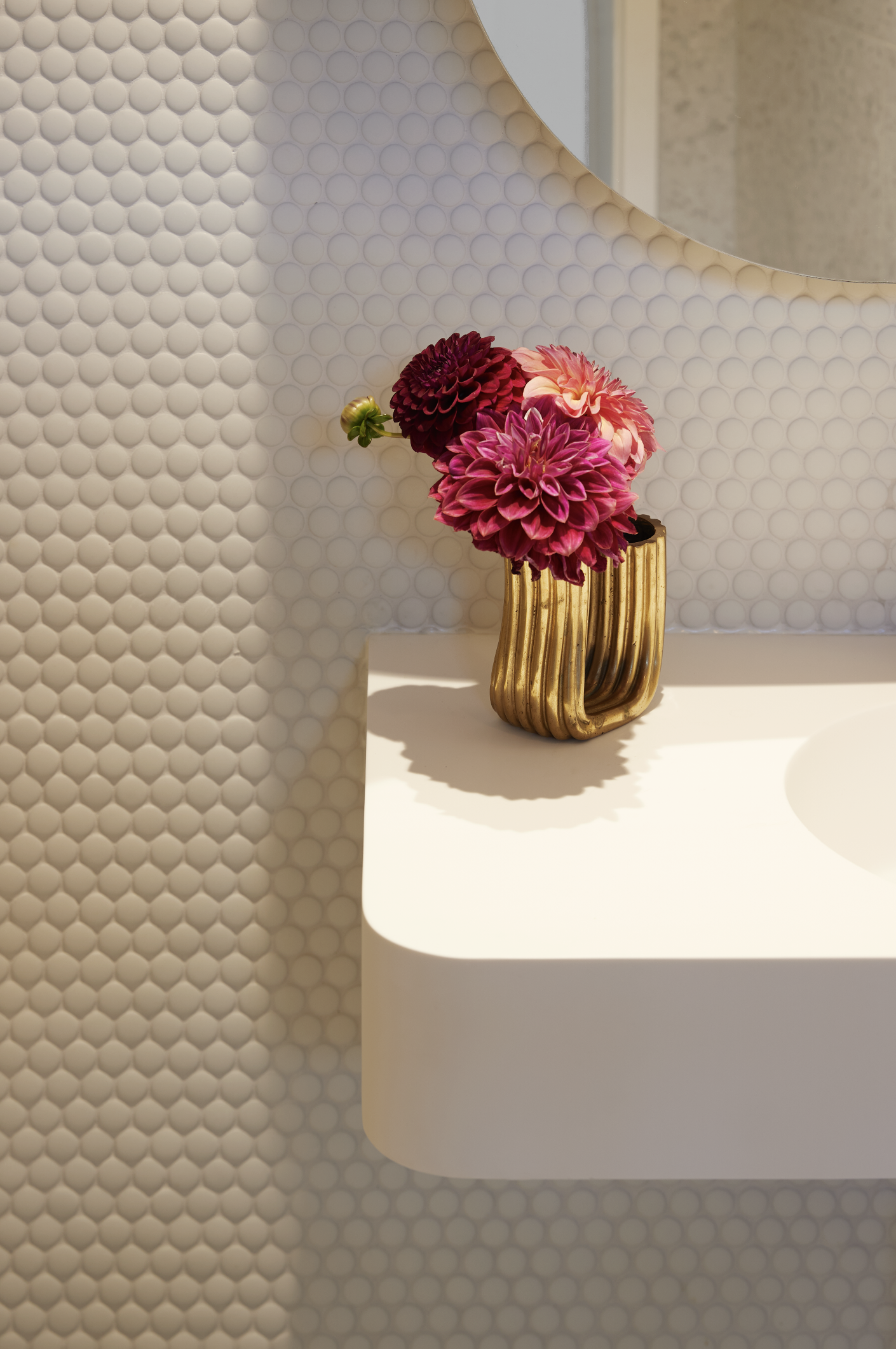 In a villa renovation by Jones Architects, interior firm Sticks+Stones Design crafted a small, unassuming en suite that packs a big punch.