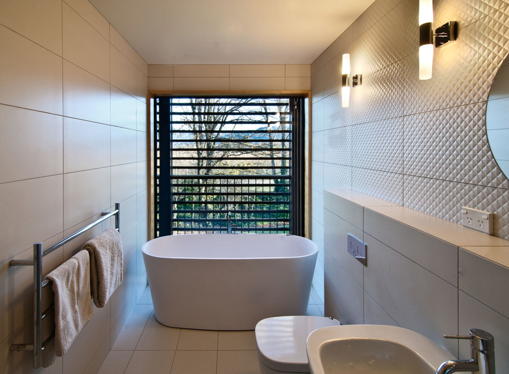 This luscious bathroom is part of a luxury lodge situated high on a hilltop in Motueka, near Nelson.