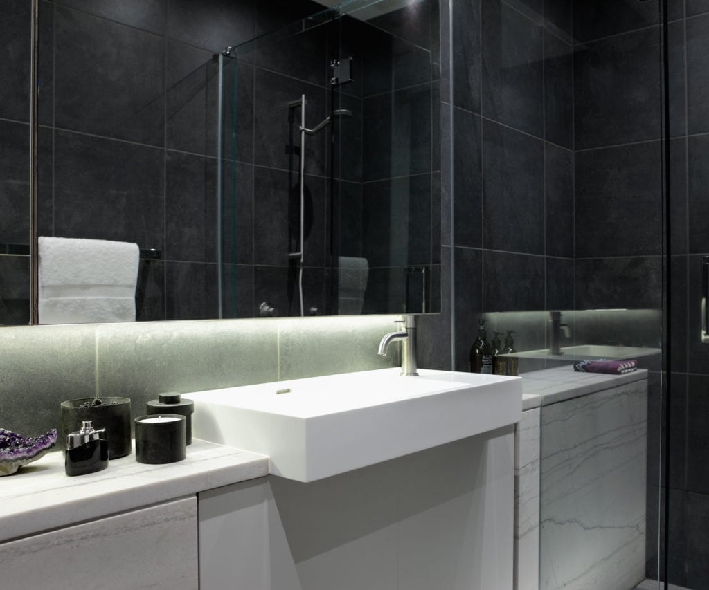 This Ponsonby en suite was designed around existing window placements within an awkward space.