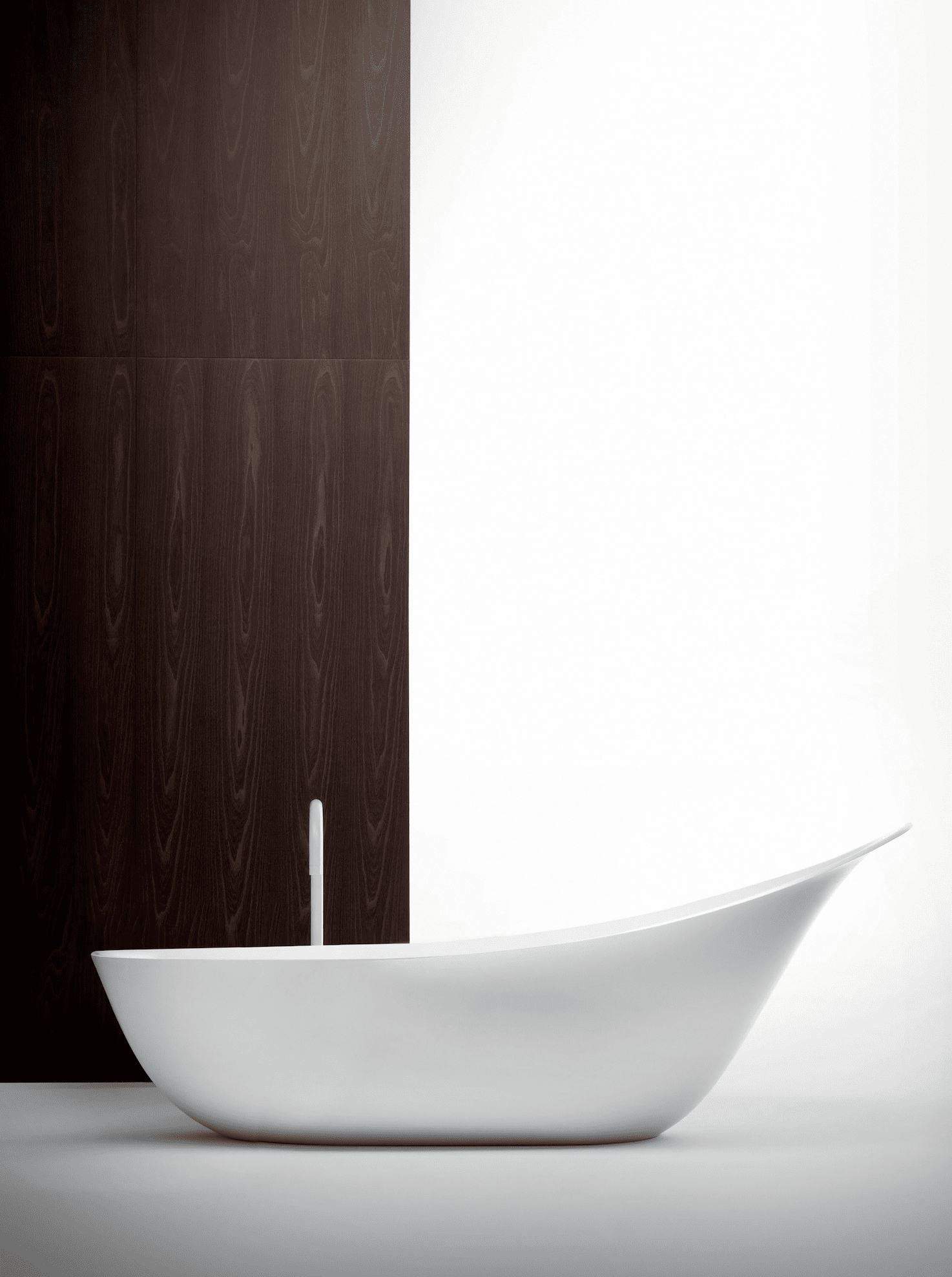 It is in the sensual elements that luxury resides in the bathroom: the touch of a surface, the embrace of the sculptural form of a bathtub, the curvature or graphic abstraction of an object.