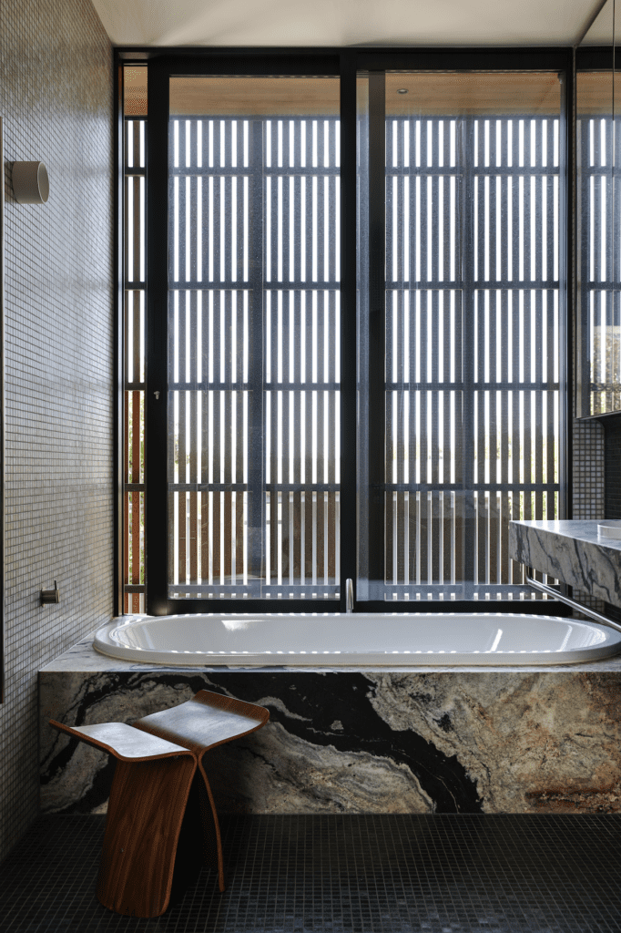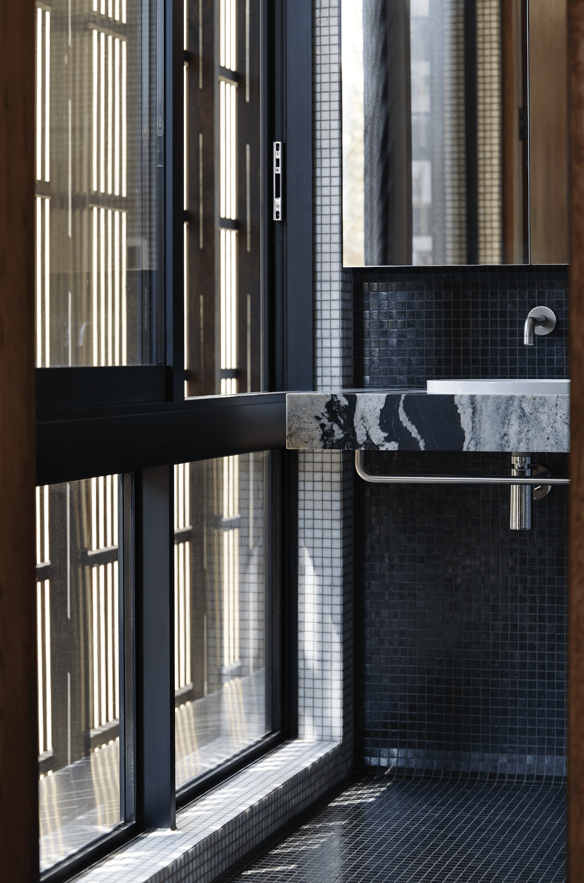 The façade has been imprinted with the Herbsts’ instantly recognisable signature. However, the fact that it is a city dwelling, rather than their usual beach projects, required a different sensitivity and approach to materiality.