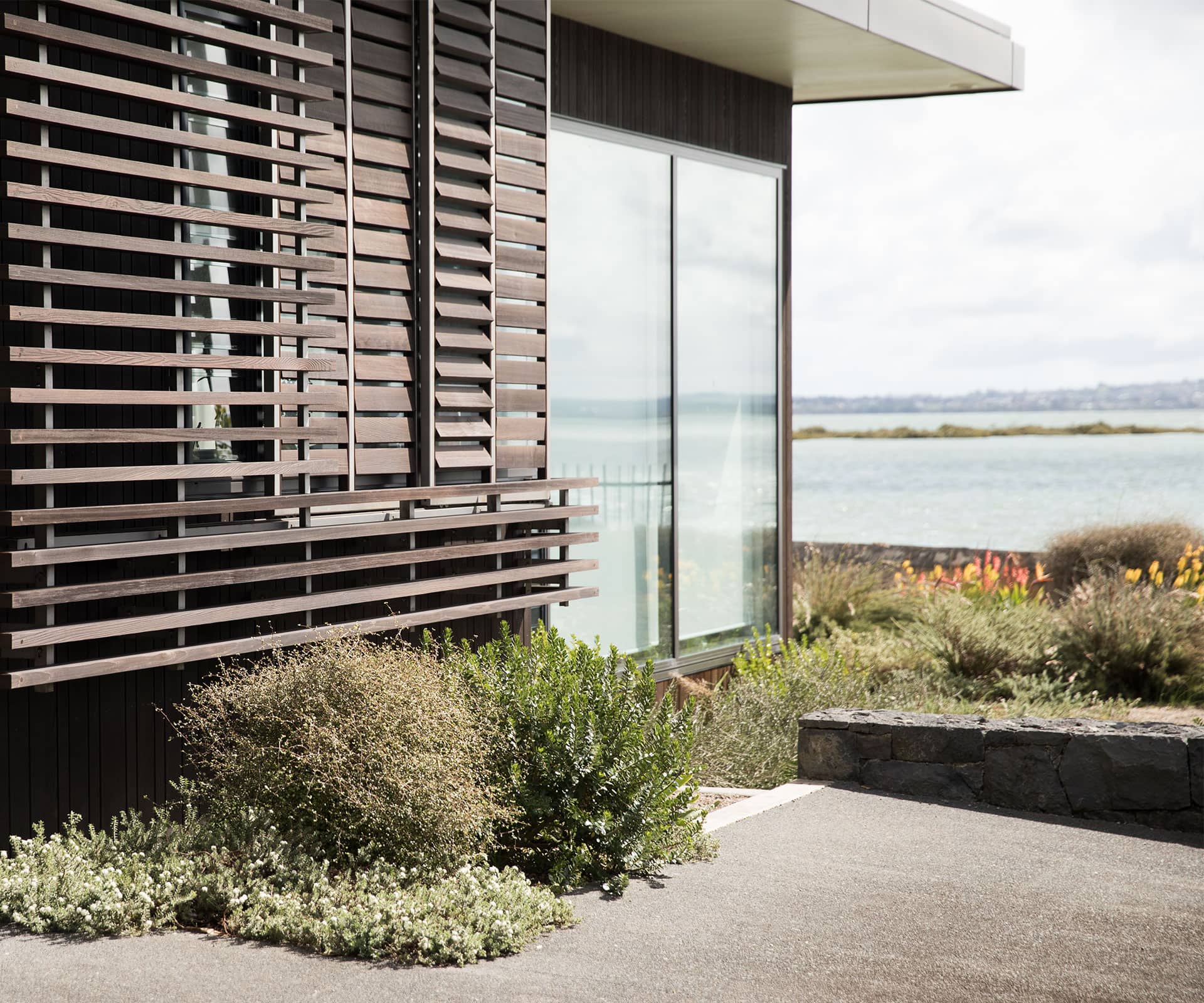 Brief: Design a cohesive collection of gardens for three different zones surrounding this waterfront Auckland home.