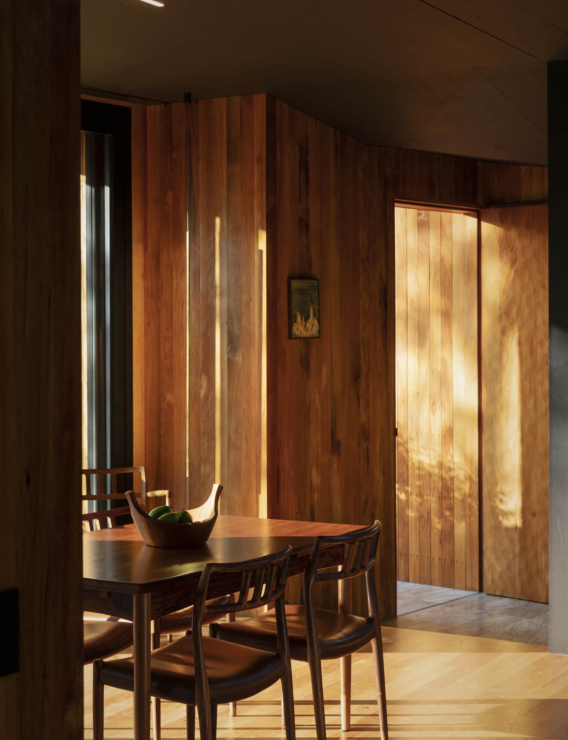Off this room, there are – unusually – two smallish living rooms. One for the kids, and one for the adults. The latter is a cocoon of rimu, with a generous built-in sofa that wraps three sides of the room. Webb fondly remembers one of the first houses she ever designed, fresh out of architecture school.
