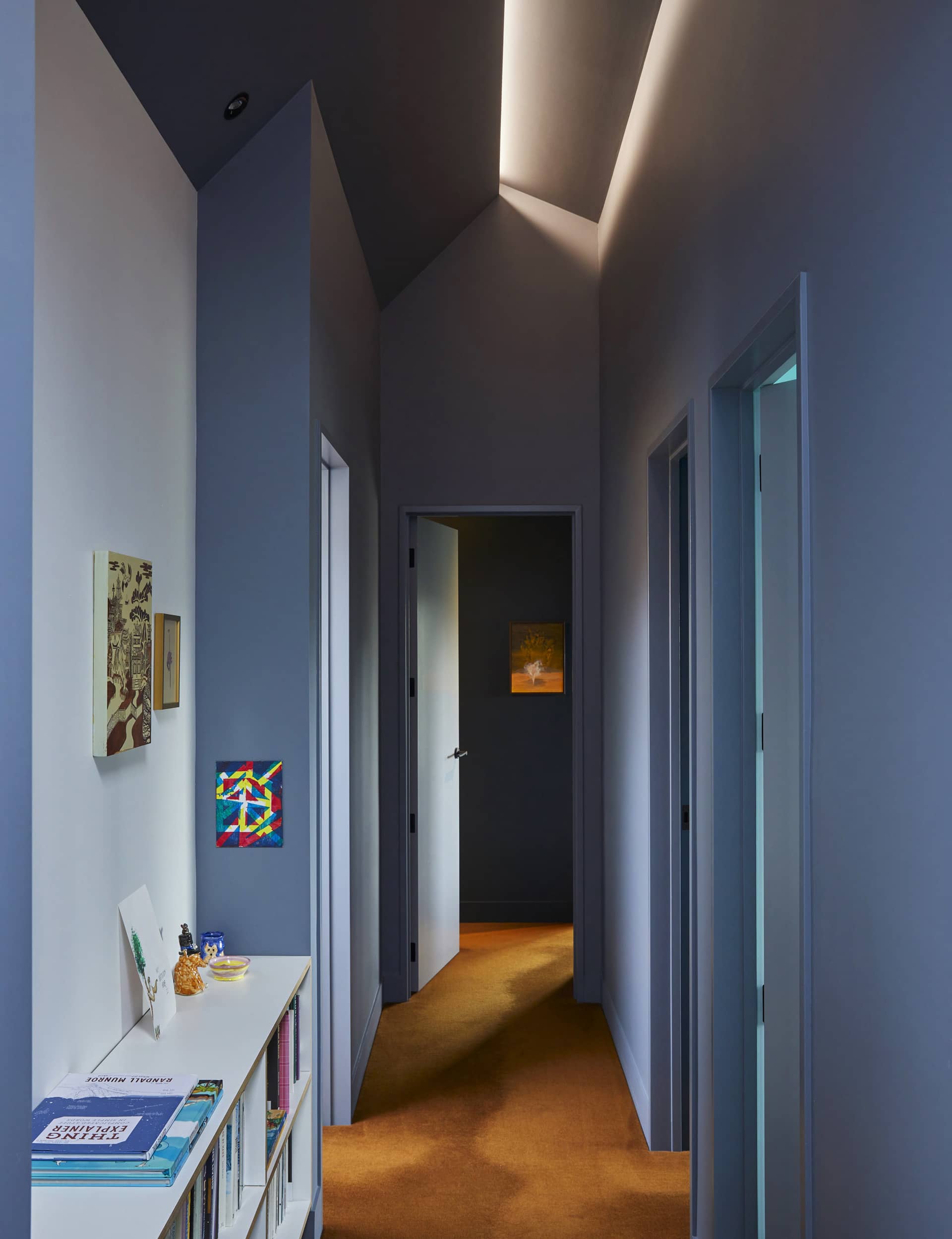 There are quite a lot of walls. The entire house feels cocooned, pleasantly inward facing, but not claustrophobic. “I feel comfortable in enclosed spaces,” says Webb. “I like feeling my back against a wall. For me it’s a physical sense, the way you feel a space. It’s one of the reasons I became an architect – because I felt physically different in different spaces.”